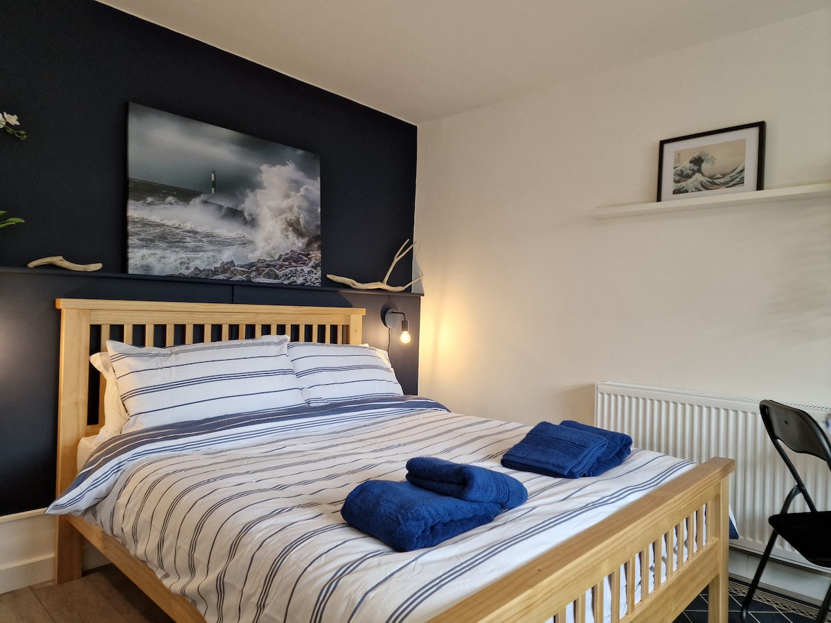 Disfruta de una estancia en este estudio con una ubicación ideal. A pocos minutos a pie del puerto, el mar, el sendero costero, tiendas, restaurantes, estación de tren y autobús. Es un punto de partida ideal para explorar el centro y el oeste de Gales. Dentro del estudio encontrarás una cómoda cama doble, un moderno baño privado, una pequeña cocina con microondas, tostadora, hervidor y nevera con congelador. Hay una mesa plegable, por lo que si no la usas puedes disfrutar de más espacio. Hay un televisor de 32 pulgadas y wifi gratuito. Hay estacionamiento disponible a petición.