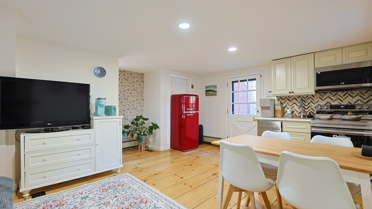 Casa de 3 dormitorios completamente renovada en granja de trabajo con chimenea y piano. La cocina Lux cuenta con electrodomésticos de acero inoxidable, refrigerador subcero y encimeras de mármol. Patio trasero vallado y privado con barbacoa. La granja tiene cabras, cerdos, pollos, colmenas de abejas, patos y cafetería y panadería en el lugar. Cerca de Huntington Village, senderos para bicicletas, paseos por la naturaleza, restaurantes, parques y la playa. Wi-Fi rápido, acceso a lavandería y se admiten mascotas. Camas nuevas y piano de cola para bebés. Las habitaciones tienen cortinas oscuras.