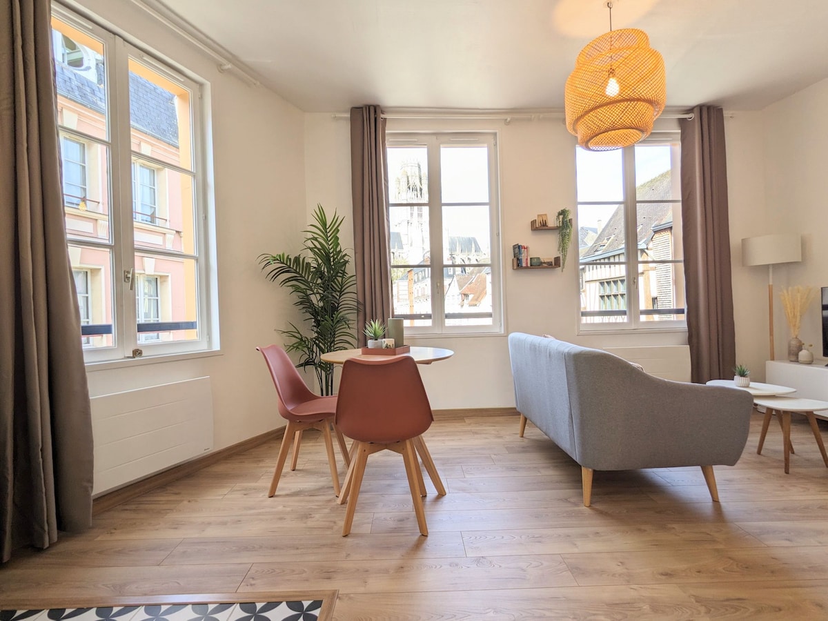 Raro apartamento espacioso, luminoso y muy tranquilo de 65m2, situado en el patio en el corazón del centro histórico peatonal de Rouen. Alojamiento cómodo, limpio y bien insonorizado gracias al doble acristalamiento. Tiene un dormitorio con ropa de cama de calidad, una agradable sala de estar espaciosa, una cocina abierta totalmente equipada y un baño con bañera. Ideal para una estadía cómoda en pareja, tranquilo, en una ubicación central excepcional. Limpieza profesional incluida.