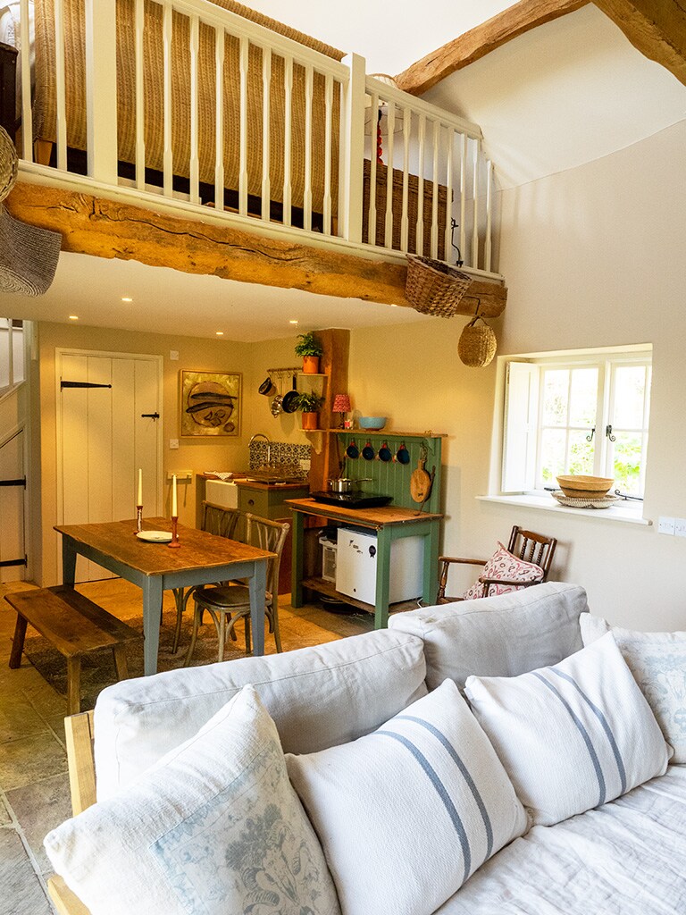 Cosy converted barn in a beautiful village in the Cotswolds. Peaceful and private, The Lodge has just been renovated to create the perfect place to escape and unwind. New high spec bathrooms and bespoke kitchen with brand new appliances and underfloor heating on the whole of the ground floor. Two lovely bedrooms in the eaves, one with ensuite shower room, king size beds, ELLE Decoration pillow top mattresses, Egyptian cotton bedding, fluffy towels and black out blinds.