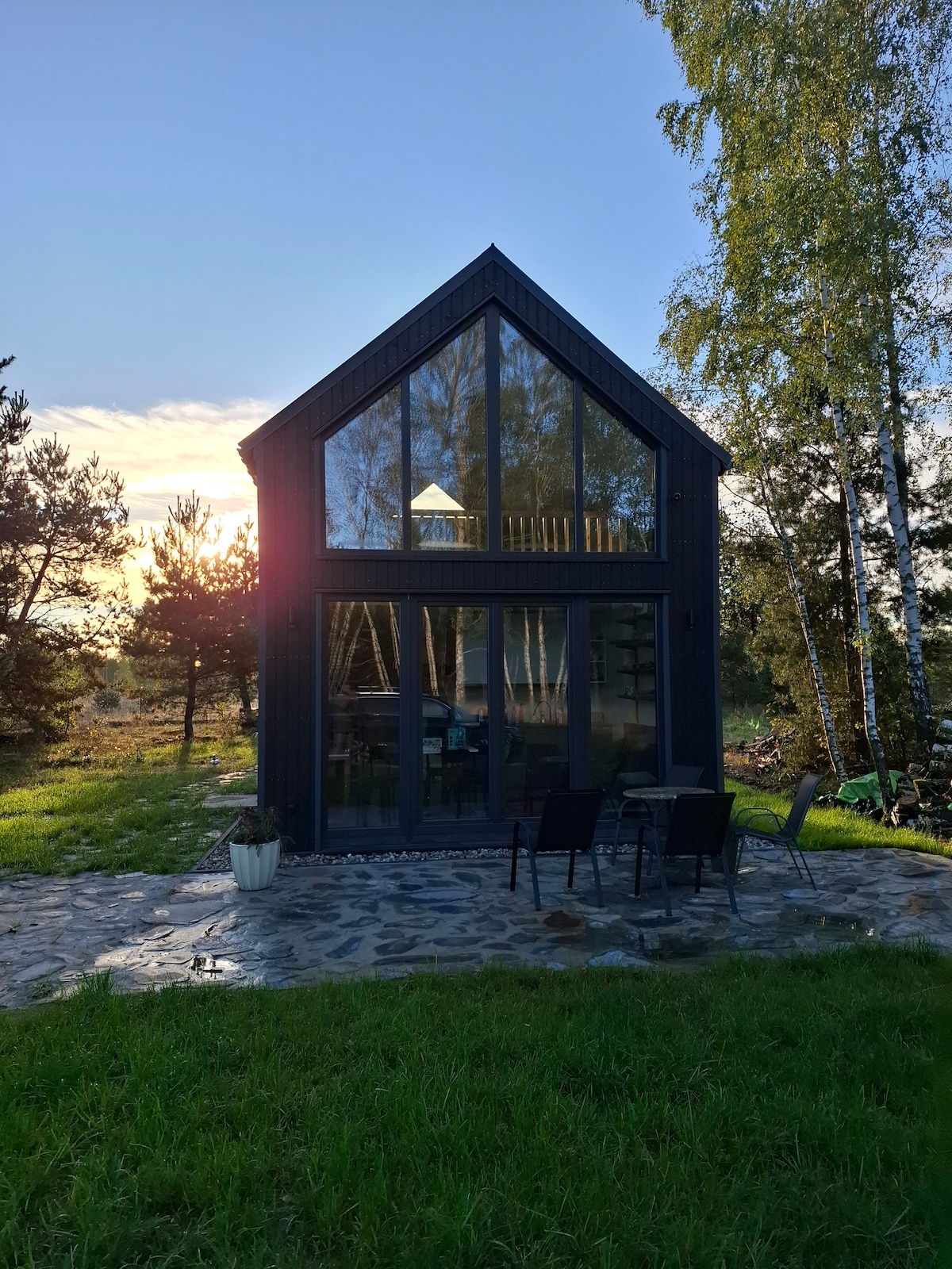 El alojamiento está climatizado y es cómodo en cualquier época del año. En los días fríos, te espera una sala de estar con una chimenea caliente y un gran ventanal, así como un patio más cálido, un río y los bosques circundantes. Ubicado en Natura 2000 justo encima del limpio y salvaje río Liwiec con su propio acceso a la orilla. Rodeado por un jardín privado lleno de plantas endémicas. Ofrecemos sábanas, toallas y artículos de aseo ecológicos. Una cocina bien equipada te espera con productos básicos como café, té, sal, azúcar o aceite de oliva. También está nuestra pequeña despensa, donde siempre encontrarás latas de tomates y pasta, así como otras baratijas. Ofrecemos una lavadora/secadora, parrilla de gas, muebles de exterior, juguetes para niños y hermosas vistas. A unos cientos de metros de la casa comienza el viaje del valle de Liwca. Sniazdowo se encuentra justo al lado del límite del parque paisajístico Nadbużański (recomendamos especialmente la cercana Reserva Natural de Jegiel para pasear). De nuestros vecinos puedes comprar quesos de cabra, miel y huevos de campo, hacer kayak o montar a caballo, o incluso pedir una sauna móvil o un paquete (se aplican tarifas adicionales directamente a los proveedores). En resumen: naturaleza, armonía y relajación a solo 50 km de Varsovia.