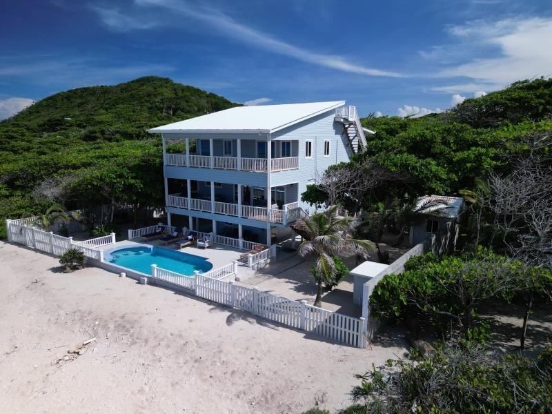 Escape to paradise in this stunning vacation rental on Utila. This oceanfront 4 bedroom, 4 bath Mediterranean-style home offers unsurpassed ocean views and sea breezes. Stylishly decorated, this rental features top-of-the-line amenities, including comfortable mattresses with high-end linens, accents and air conditioning throughout. Relax in paradise while enjoying all that the beautiful and lively Island of Utila has to offer.
