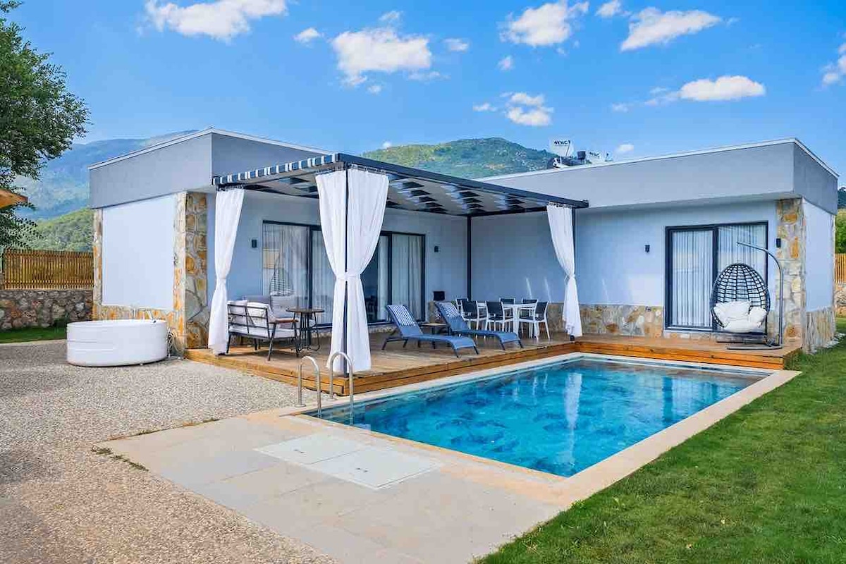 Unas vacaciones especiales para ti en Fethiye, rodeado de naturaleza Ubicado en el ambiente tranquilo de Fethiye, es una escapada moderna y romántica para dos en forma de 1+1. Tiene una piscina climatizada. Ubicada lejos del ruido de la ciudad pero cerca de todos los servicios, nuestra villa está lista para que te relajes y tengas momentos agradables junto con su moderna arquitectura interior, diseño diferente, piscina privada para ti. Se encuentra a 10 kilómetros, a 15-20 minutos del centro de Fethiye. La calefacción de la piscina está incluida en el precio.