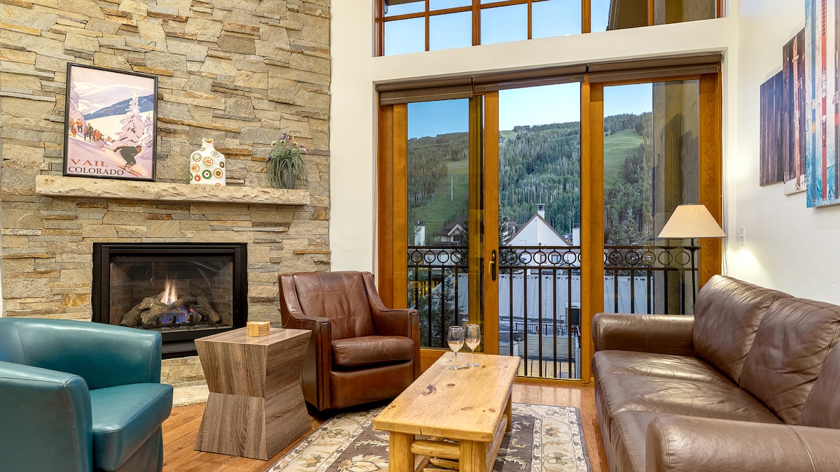 En el centro de Vail Village, ubicación perfecta, con chimenea