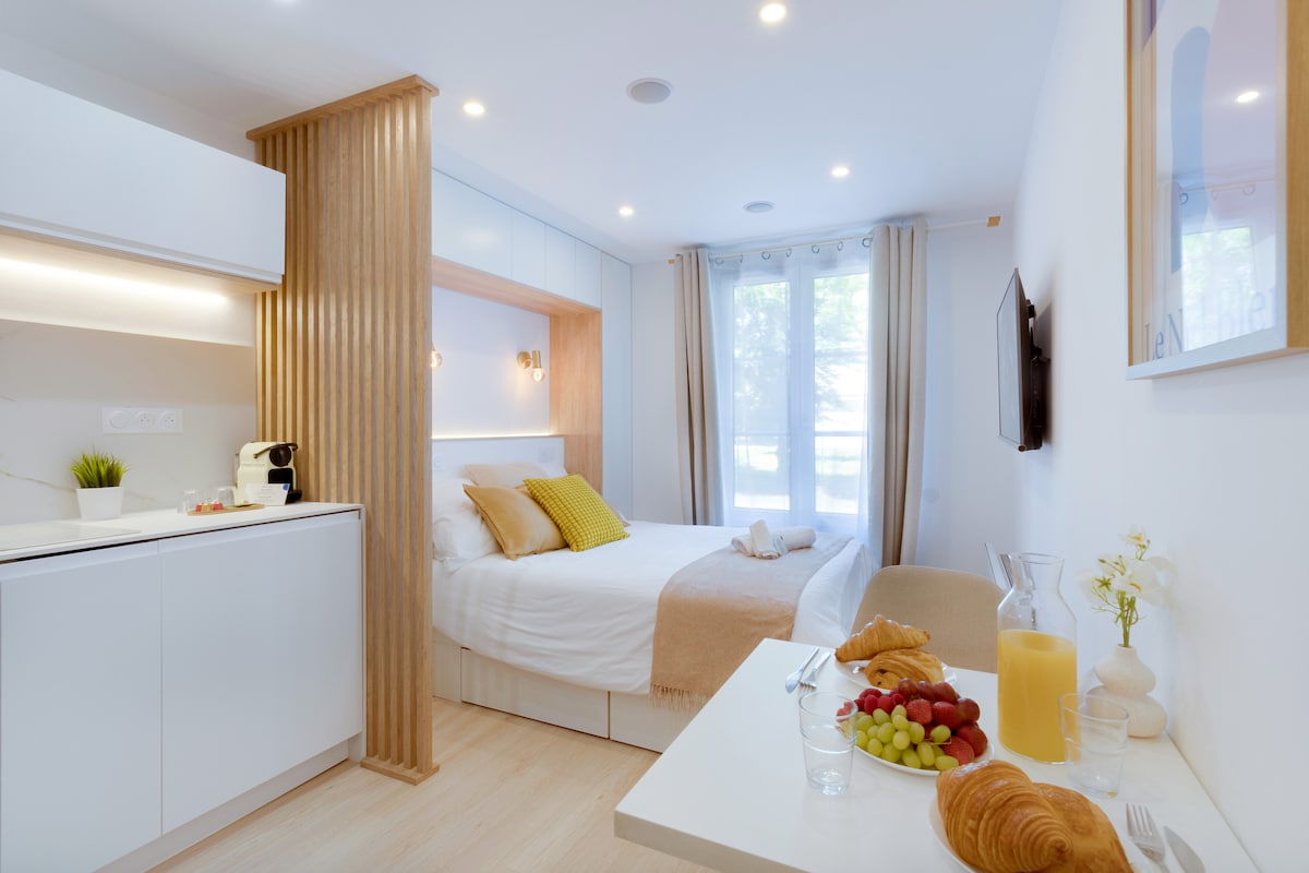 ✨ Encantador estudio en Serris, a 2,7 km de Disneyland, París ✨ Con una ubicación ideal en Serris, este estudio de 20 m² te da la bienvenida a un ambiente bohemio y retro, con un encanto típico parisino. Situado en un edificio nuevo y totalmente equipado, ofrece toda la comodidad que necesitas para una estancia acogedora y agradable.