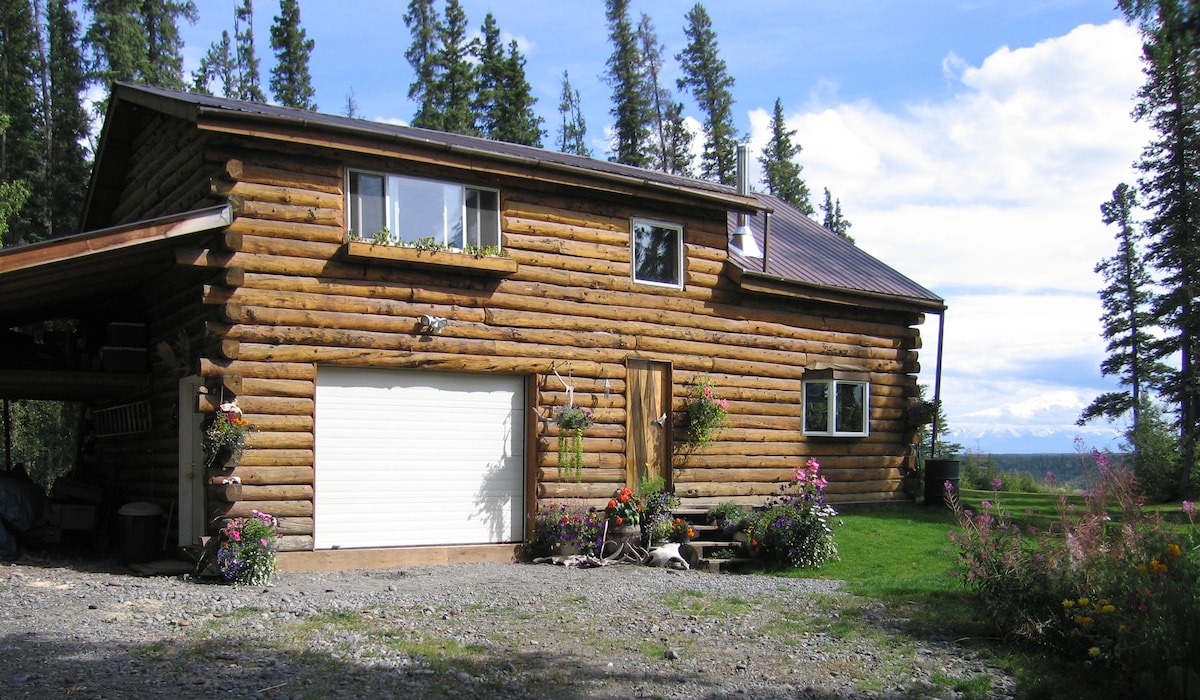 ¡Ven a alojarte en nuestra pequeña casa de Alaska con una gran vista! Se proporciona café y té, así como un desayuno casero cuando también estamos en casa. Ubicado cerca del Parque Nacional Wrangell-St. Elias y Valdez. Excelente ubicación para esquiar/hacer senderismo en el paso de Thompson o esquí de fondo/senderismo alrededor de la propiedad. Los muebles de madera hechos a mano y los libros y tesoros temáticos de Alaska que hemos recopilado a lo largo de los años están en la pequeña casa para que disfrutes. Se admiten perros y tenemos una mezcla de pastor alemán.
