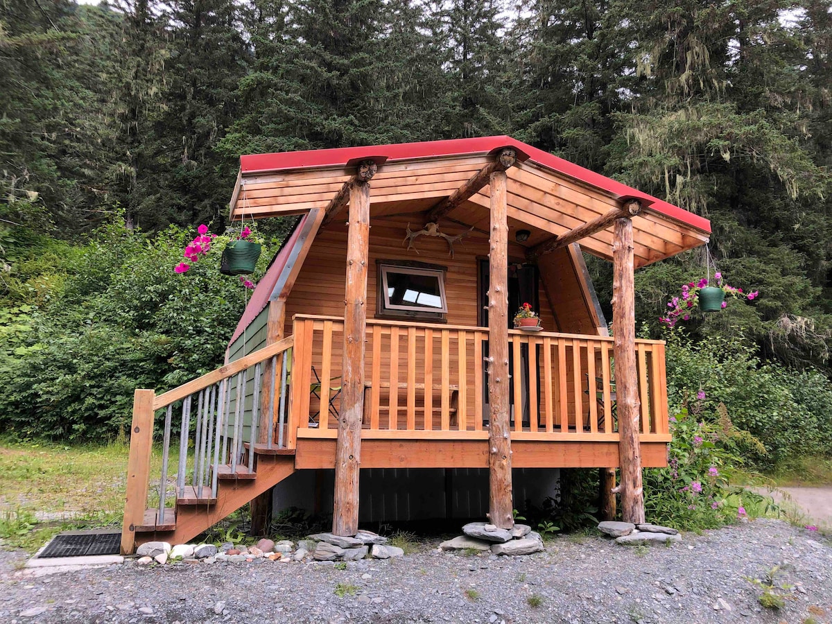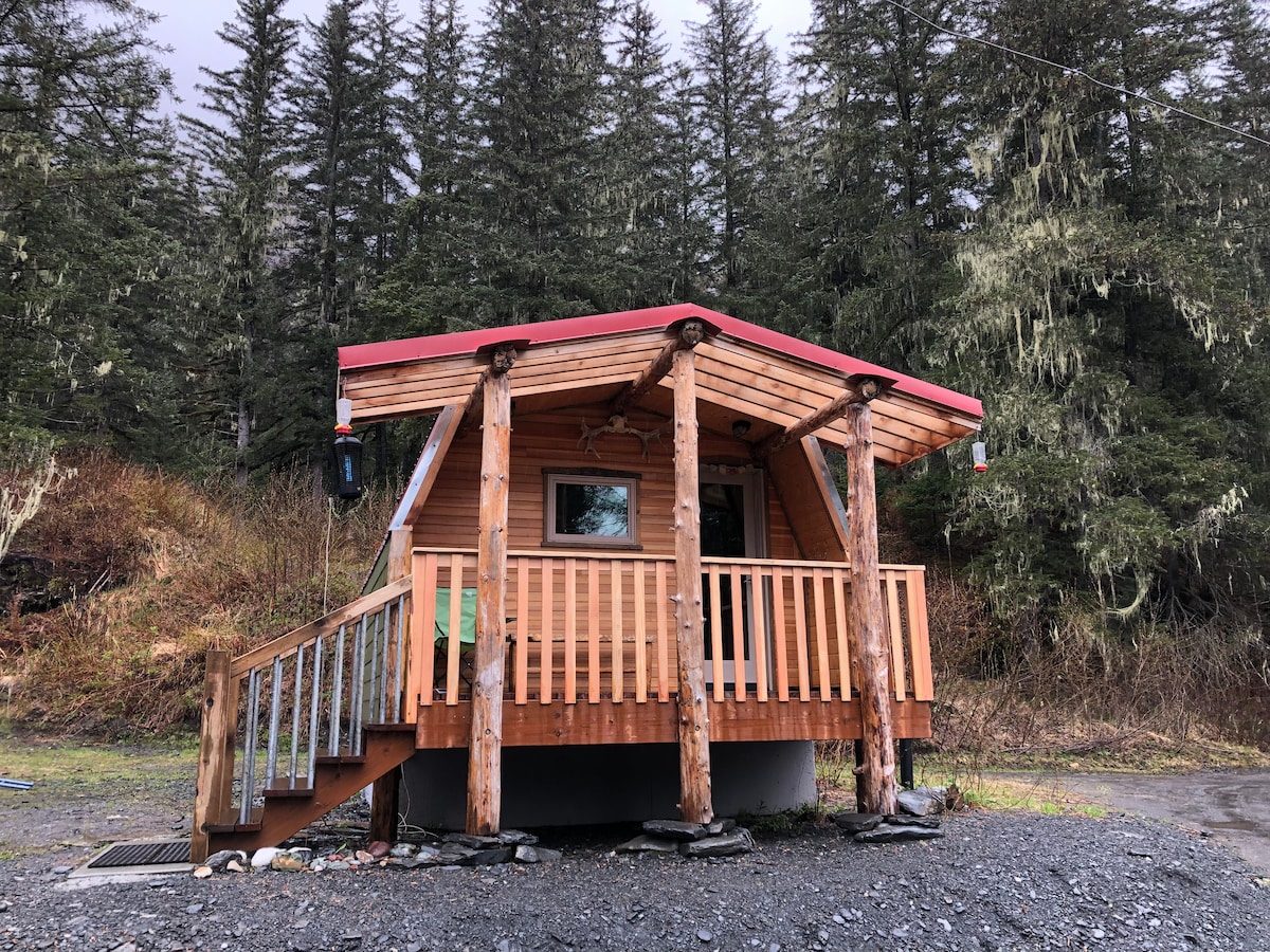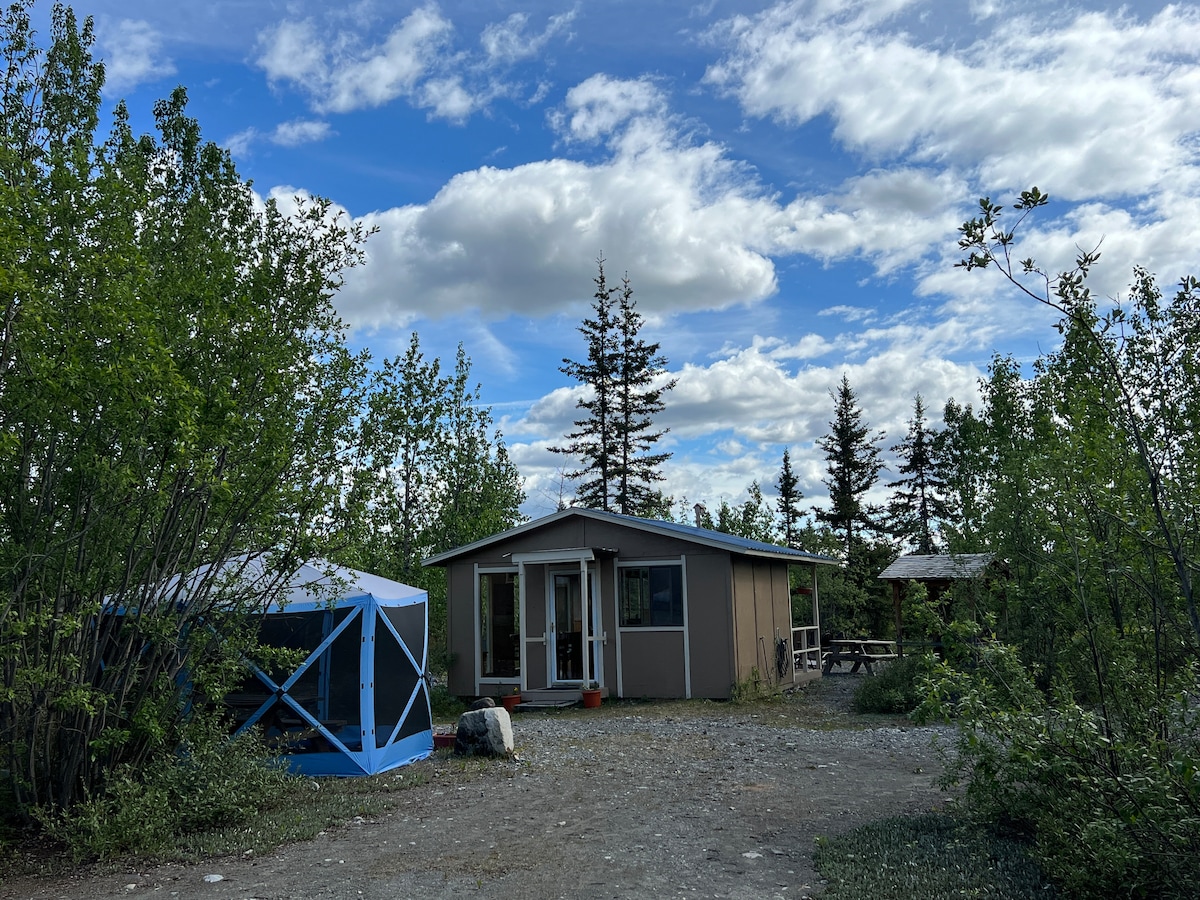 Cabina seca rústica de Alaska. Escondido en los árboles, pero no muy lejos de la carretera. Estas cabañas son un gran campamento base para tus aventuras en Alaska. Múltiples áreas de pesca de salmón cercanas. No hay fontanería interior. Los huéspedes deben sentirse cómodos usando una letrina.