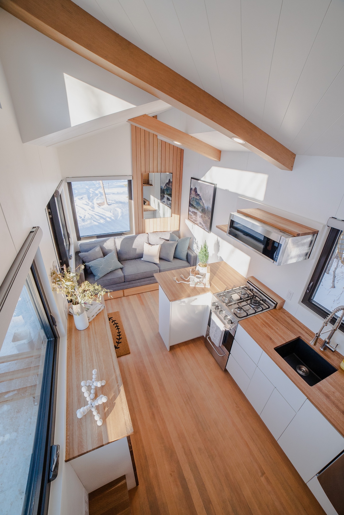 Si quieres probar la vida en una minicasa, ¡esta es la ideal! 268 pies cuadrados de espacio interior más una amplia terraza hecha de cedro. Esta pequeña casa apareció en la revista Dwell. Gran espacio para que parejas o aventureros solitarios disfruten de esta moderna y galardonada TH. Carpintería de roble blanco y abeto VG en todas partes, gabinetes blancos personalizados con encimeras de roble en la cocina. Diseño espacioso y luminoso con escaleras abiertas que conducen a un dormitorio tipo loft con cama tamaño queen. Bañera de inmersión con cabezal de ducha de efecto lluvia en el baño de lujo.