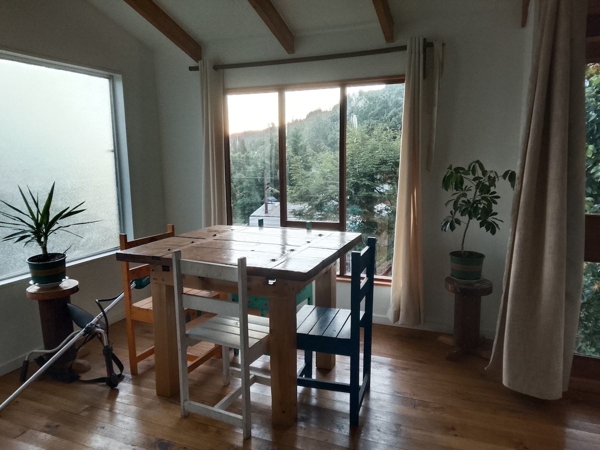 Un lugar mágico, con una vista privilegiada a la isla del rey y al río Valdivia, excelente conexión wifi y aplicaciones como max, Disney premiun y netflix. Un alojamiento familiar que te facilitarán los necesario para tener una instancia cómoda, si necesitas algo no dudes en hablarme y solicitarlo, si esta dentro de mis posibilidades lo haré posible. Nuestro sello es la amabilidad y la limpieza. Somos pet-friendly, tenemos dos mascotas hermosas que están en el espacio Popeye y Olivia.
