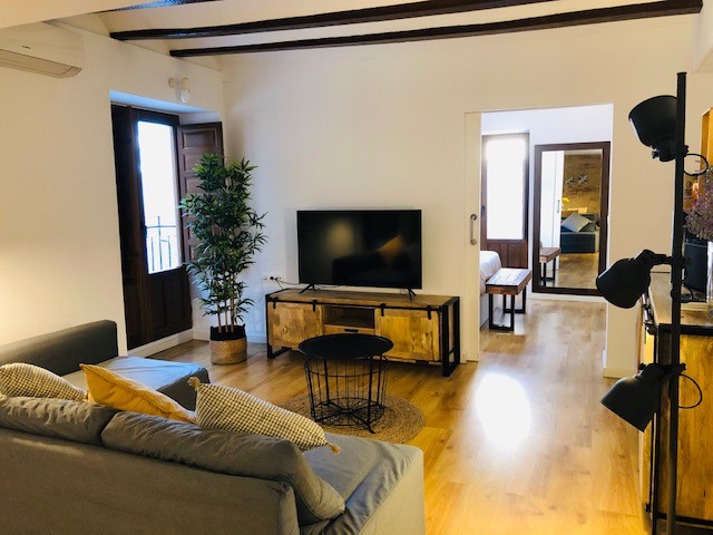 Apartamento acogedor, en la primera planta de un edificio histórico de tres alturas. La calle donde se encuentra es peatonal pero muy transitada por su belleza y atractivos, como la Real Parroquia de San Martín Obispo y San Antonio Abad ,hoteles modernos,servicios como Carrefour, panadería, tienda alquiler de bici y el mejor café para llevar, un camino obligado hacia el Mercado Central . De noche el Café Madrid y el pub irlandés son punto de encuentro , el bullicio termina sobre la 1:30.