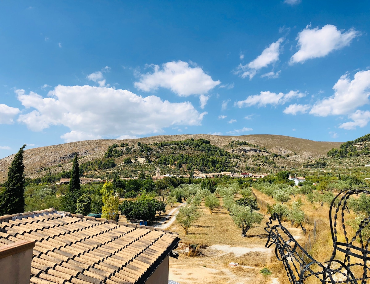We are located just 7 minutes drive from the centre of Bunol, 30km from Valencia. You will find yourself in tranquil countryside, ideal for hiking, cycling, and birdwatching (we see golden orioles, bee eaters, hoopoes & eagles). Our small private finca with olive and fruit trees, chickens and three cats is the perfect place to relax and enjoy the magnificent views of the Sierra del Ave and the night sky. The pool is perfect for taking a refreshing dip on hot days or after a busy day sightseeing.