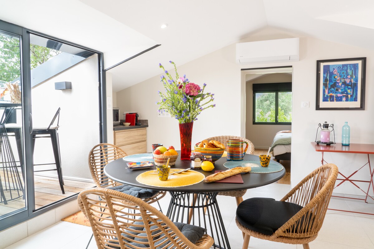 Amplio y moderno, en el centro del pueblo de Salavas. Río a 500 m. Pan, tabaco, prensa y restaurante a 200 m. Terraza y aparcamiento privados. Vallon pont d'arc a solo 2 km. Cama de 140 x 190 , ducha italiana, cocina y pequeña sala de estar. Aire acondicionado reversible. wifi y juegos de mesa disponibles. La dulzura y la tranquilidad de un pueblo auténtico con todos los servicios cerca. La cueva Chauvet, el Aven d'Orgnac, los mercados locales... PD: no se admiten animales.