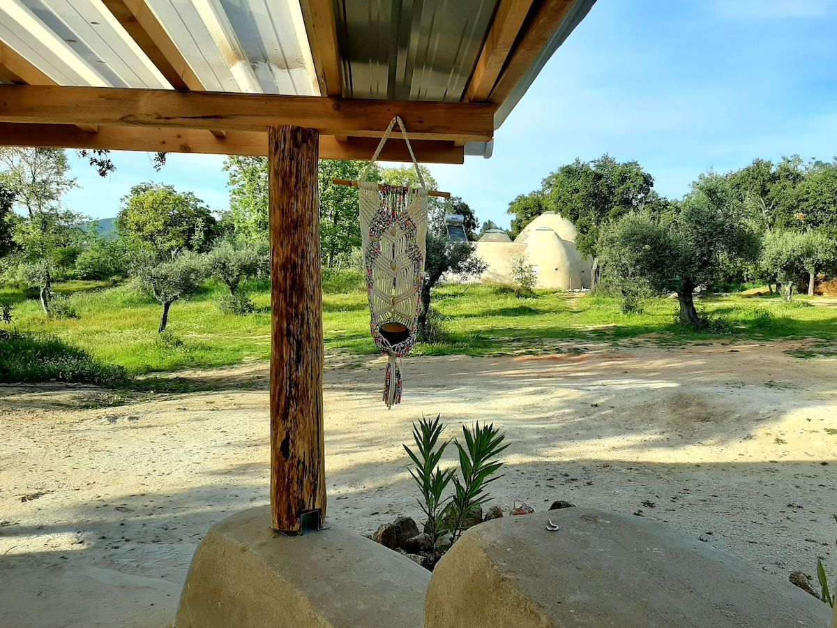 Estamos ubicados en la hermosa campiña ondulada justo entre la ciudad de Castelo Branco y Fundão. Esta hermosa yurta está situada justo en el límite de nuestra tierra. En un espacio encantador y tranquilo entre los árboles, con vistas a la montaña Gardunha. Ofrecemos una cama doble, una pequeña cocina con ollas y sartenes, cocina de gas, nevera con pequeño compartimento congelador, inodoro de compostaje, ducha y leña para la estufa de leña en los meses más fríos. Se proporcionan toallas y ropa de cama. Descuentos para reservas semanales.
