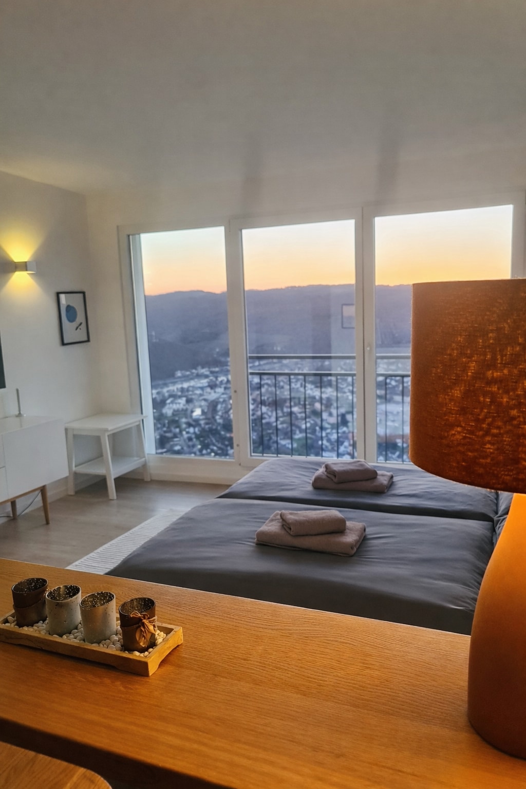 Ya sea que viajes en pareja, en familia o por negocios, ofrecemos una experiencia elegante y única en nuestro estudio, ubicado en un edificio histórico completamente renovado en el centro de Coblenza, con vistas al castillo y a la fortaleza de Ehrenbreitstein. Un alojamiento de diseño moderno, extremadamente bien equipado con excelente wifi de alta velocidad, para agradables estancias cortas y largas.