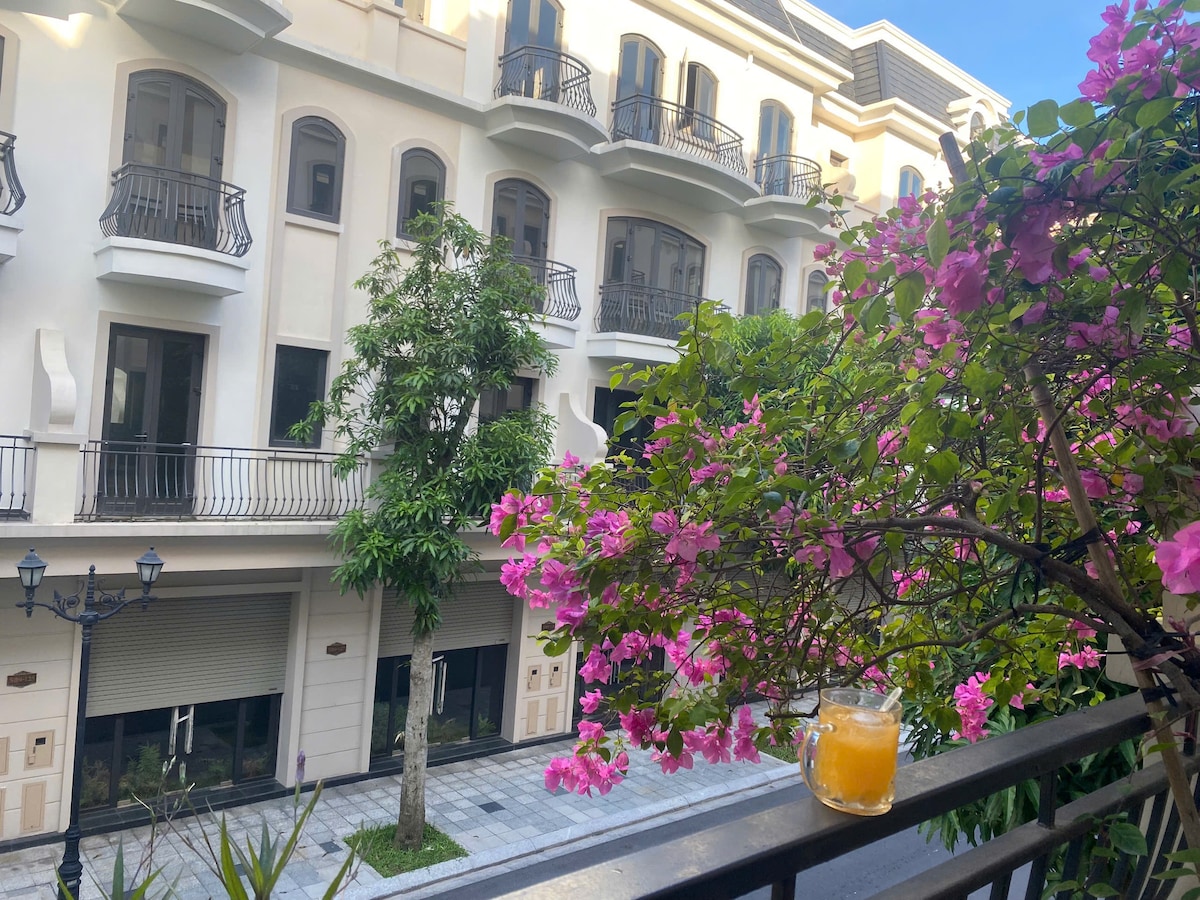 Un amplio dormitorio de lujo con una sala de lectura adjunta a un elegante baño con bañera de hidromasaje y ducha, en medio de una zona residencial nueva, moderna y serena: lugar perfecto para una escapada para recargar energías y practicar la atención plena, solo o con tus seres queridos. Hay autobuses gratuitos frecuentes que pueden llevarte a los famosos lugares de interés de Hanói, como la Ópera, en más de una hora. Como alternativa, también puedes llegar desde el centro de Hanói en motocicletas o autos en alrededor de media hora sin tráfico.