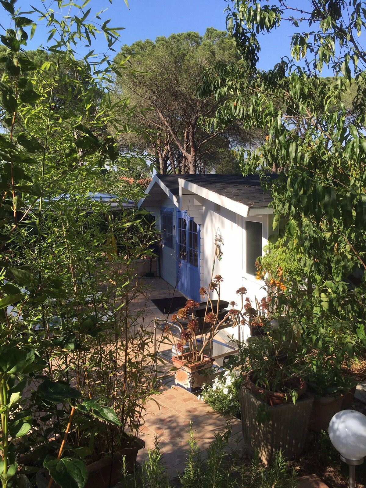 Impresionante casita de 53 metros cuadrados, con 2 dormitorios, un baño y cocina abierta. ¡Disfrute de las vistas paradisíacas del jardín, de la terraza privada de 25 metros cuadrados con pérgola y toldo, y del canto de las cigarras, los pájaros y, a veces, la rana del estanque! La casa es independiente de la masía, sin vecinos. Terreno de petanca, amplio aparcamiento. Nuevo diseño de un diseñador de interiores. Tranquilidad y serenidad aseguradas :)