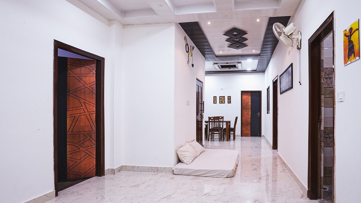 Una hermosa villa distribuida en una superficie de 5000 pies cuadrados. Con interiores enormes, cómodos, limpios y relajantes. Un jardín, para que te relajes, el apartamento también viene equipado con un televisor LED de 40”y 50", emparejado con una cuenta de Netflix, y mucho más, para que te relajes, después de un buen día de turismo, lleno de emoción de la ciudad. Situado en un barrio acogedor, seguro y silencioso, a una distancia conveniente de 12 km del aeropuerto, 12 km de Sarnath y 10 km del Ganges.