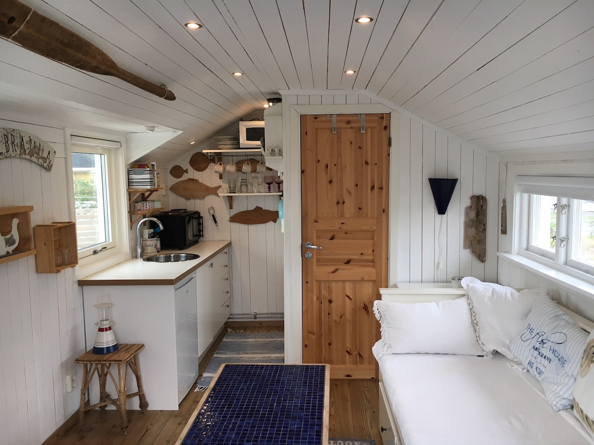 ¡Bienvenido a nuestro pequeño paraíso! En la esquina de nuestro jardín tenemos una casa que alquilamos. Se encuentra cerca del mar y de la playa en el antiguo pueblo pesquero de Träslövsläge. Si quieres alquilar esta casa por una semana o más a partir de septiembre, ¡envíame una solicitud de descuento! Esta pequeña casa (23 metros cuadrados) tiene su propio patio acogedor sobre la hierba debajo del manzano. Cerca de autobuses, restaurante, heladería y la playa (0,5 km). 6 km del centro de Varberg.