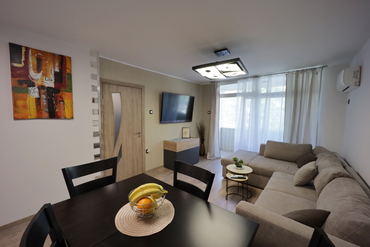 Welcome to our beautiful and cozy 2 bedroom apartment, located at in the city center of Varna. This bijou residence is situated in top center of the city with plenty of restaurants, cafes, bars and shops nearby. It's only 5 min walking to the Varna's famous Sea Garden, the beach and the pedestrian zone. The apartment comfortably sleeps 4 people (friends or family), has Air Conditioning, Cable TV, free fast Wi-Fi, fresh clean towels and bed linen, supply of toiletries. Read below for more!
