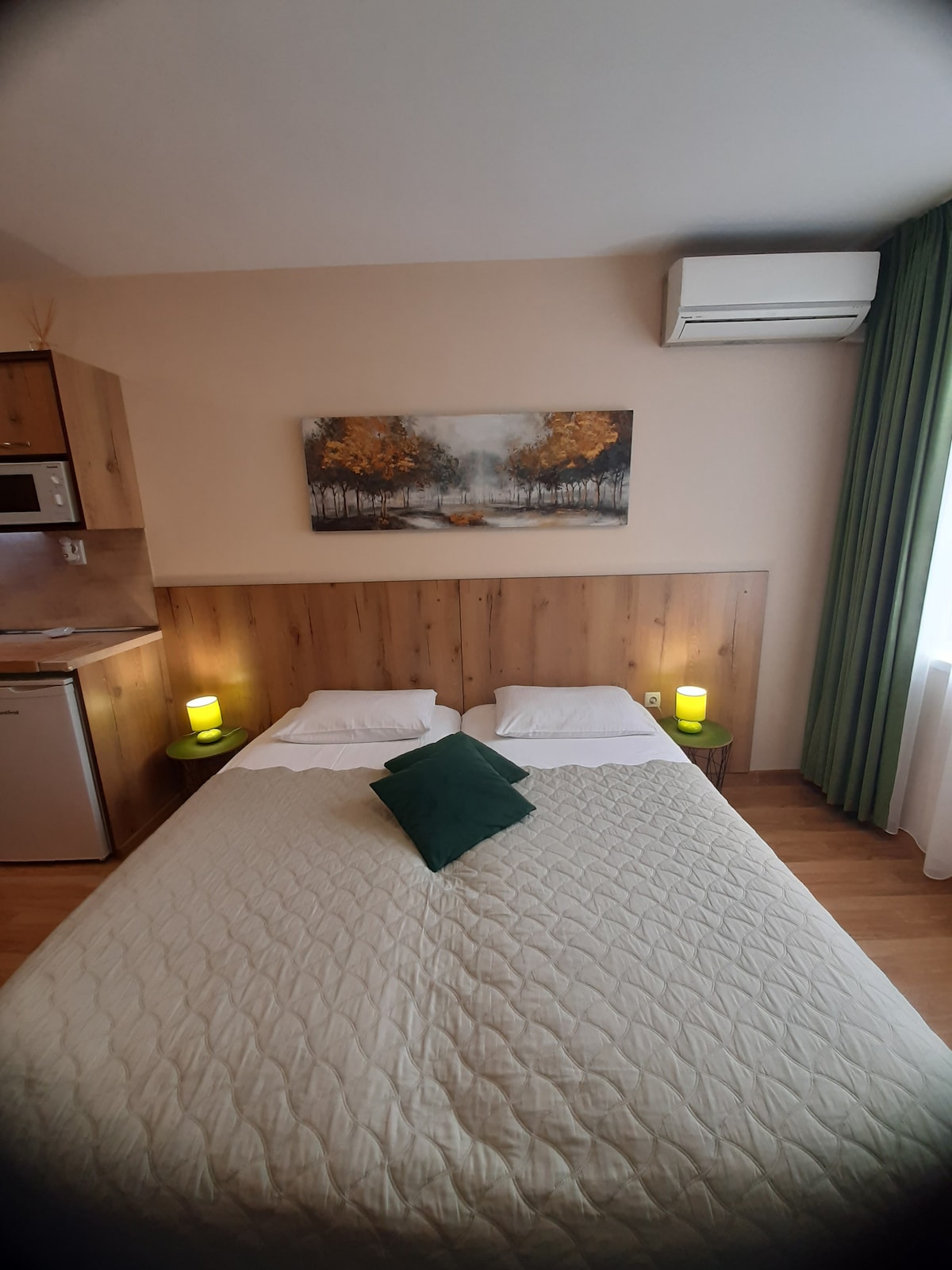 Disfruta de tu estancia en un majestuoso complejo de edificios, situado a pie de playa al sur de la ciudad de Varna, que ofrece amplias vistas al mar en un entorno verdaderamente único y privado. Como huésped, puedes utilizar la piscina al aire libre y, mientras tanto, estar a pocos pasos de la playa de arena blanca de Asparuhovo, de un kilómetro de largo.