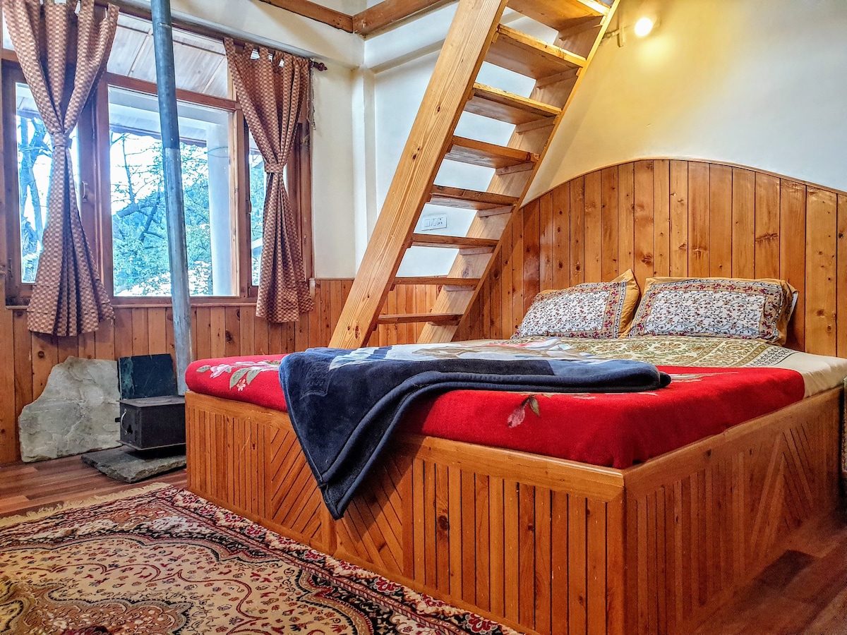 Es una casa privada con interiores de madera. La casa tiene un ático acogedor y un tandoor personal para mantenerte caliente. Hay un baño adjunto y cocina presente. Está totalmente amueblada y la cocina está equipada con cocina de gas, utensilios necesarios y cubiertos. Hay un balcón privado en la parte delantera y nada más que montañas en la parte trasera. Nuestra casa está equipada con agua caliente corriente las 24 horas, los 7 días de la semana y wifi de fibra de alta velocidad ilimitado para que nuestros huéspedes no tengan problemas de red y se sientan como en casa.