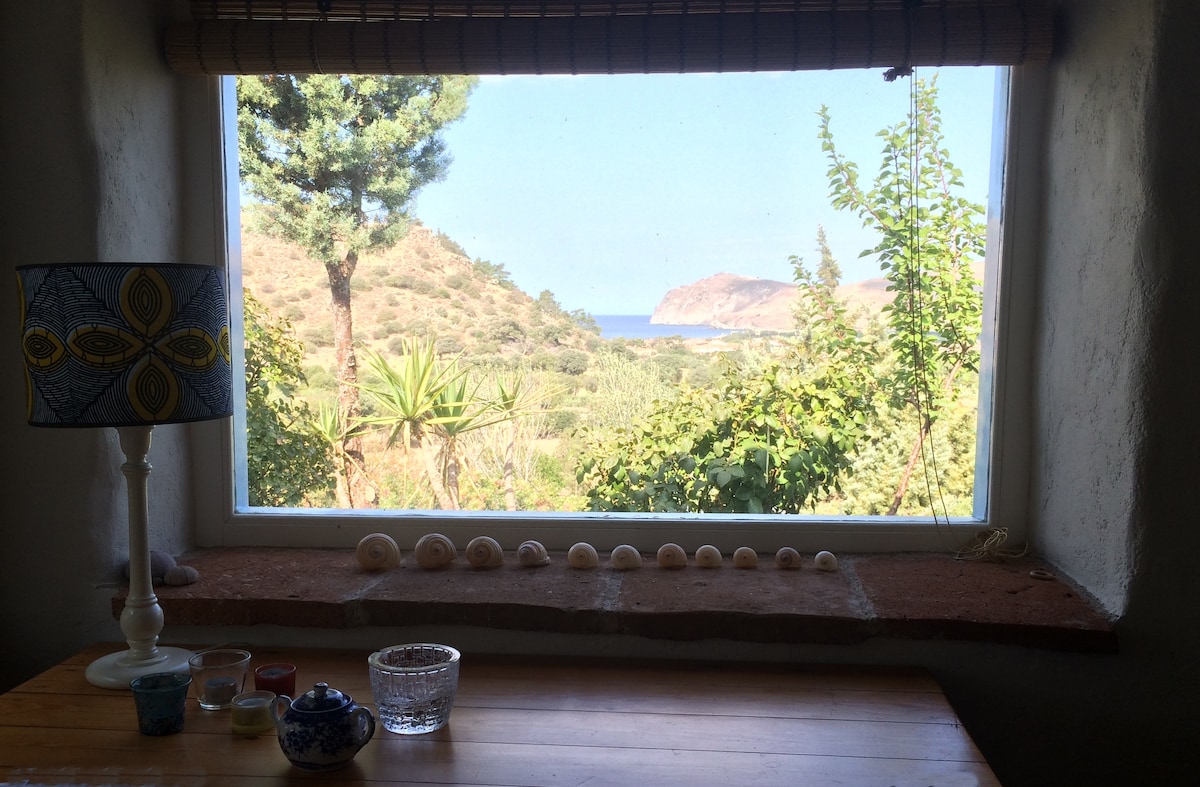 Welcome to our stone house in the traditional village on Lesvos island. Set on seven acres, enjoy breathtaking sea views, orchards, and oak groves. Just a 3-minute drive from pristine beaches and tavernas, tradition with modern comfort. As part of Amazones Eco Land, women’s community, the house offers privacy. Guests can harvest from our organic garden (seasonal) and cook in the outdoor kitchen. We've enhanced shaded outdoor areas and upgraded cooling for a perfect stay in all seasons.