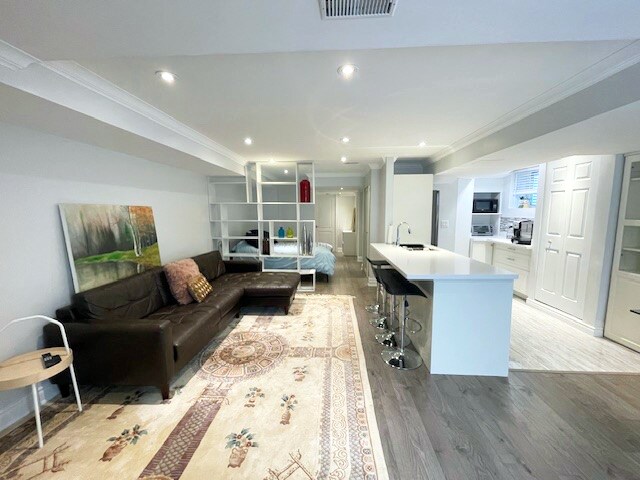 Disfruta del glamour de este espacioso, elegante, sin preocupaciones, lugar de lujo. Es nuevo y está ubicado en el corazón de Richmond Hill, a poca distancia del parque del observatorio David Dunlap, plazas, centros comerciales, escuelas, restaurantes y supermercados. Cerca de la autopista y la estación de Go, Viva, Yrt. Entrada separada y todo incluido con 1 cama queen, 1 sofá cama doble si hay más de 2 huéspedes, TV inteligente de 65 pulgadas, wifi de alta velocidad. Microhorno, nevera, cafetera K-cup, baño completo, asientos en el patio, 1-2 estacionamientos gratuitos
