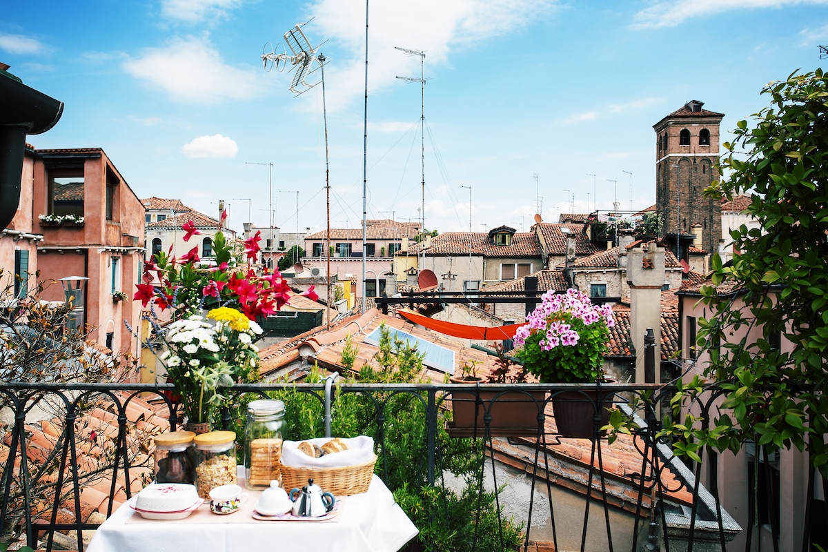 En este romántico y cómodo apartamento, a solo unos minutos de la plaza de San Marcos, tendrás una vista fantástica de los tejados de Venecia para disfrutar. Encontrarás un dormitorio acogedor y un cómodo sofá cama y tendrás acceso a un televisor listo para Netflix, WiFi, calefacción por suelo radiante y aire acondicionado. A nuestros anfitriones se les ofrecerá café, té y... una botella de buen vino y un desayuno de bienvenida en la mejor panadería del vecindario. Las llegadas se siguen personalmente. No se permiten mascotas.
