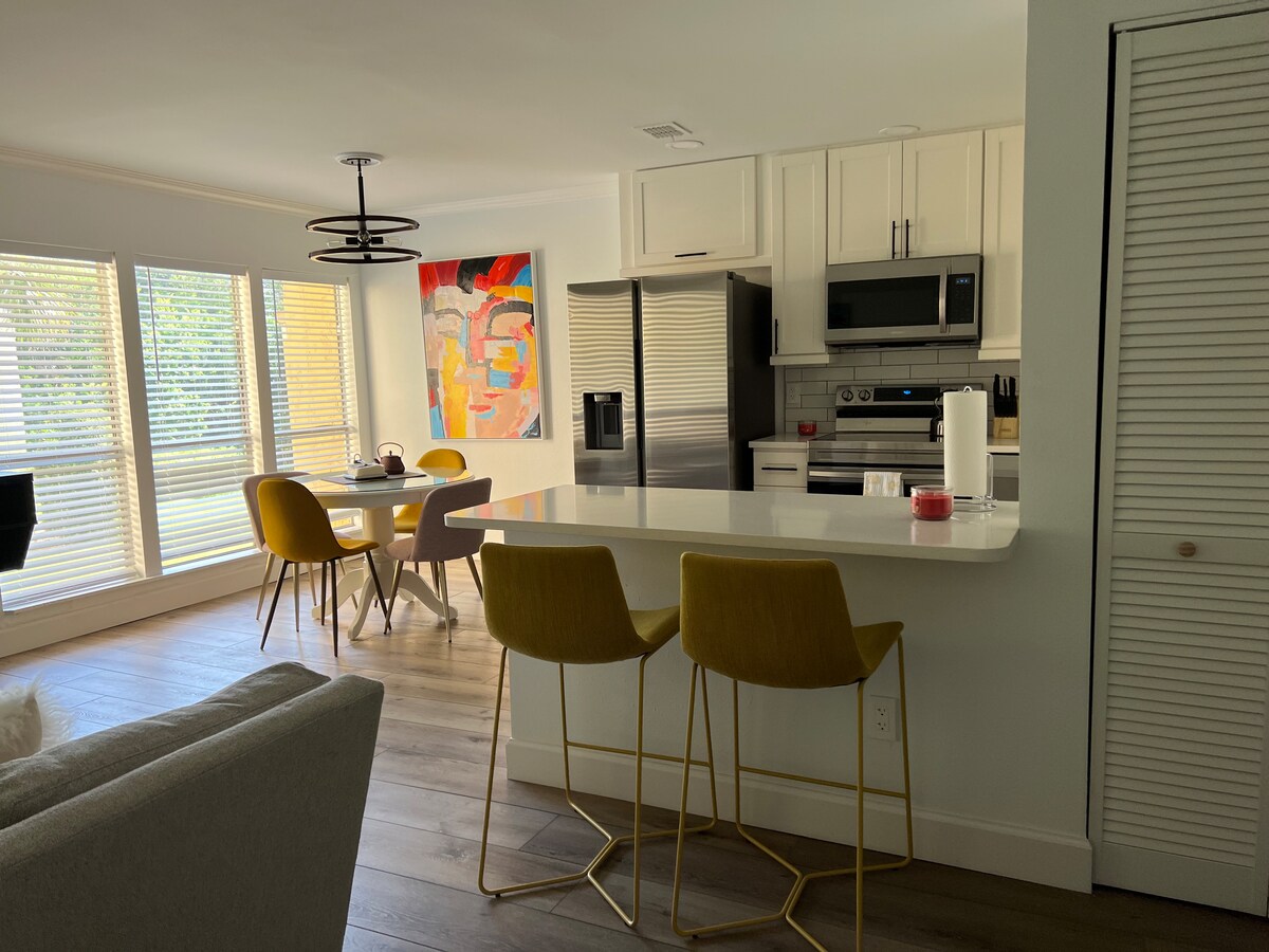 Bienvenido a la hermosa Siesta Key, ¡la playa número 1 del país! Hermoso condominio de un dormitorio recientemente renovado a 5 minutos a pie de la playa de arena blanca y atardeceres impresionantes. También al lado de restaurantes, bares, alquiler de kayak y motos acuáticas, ¡y mucho más! Contacto para alquileres mensuales disponibles. Experimenta este oasis moderno: • Sala de estar elegante • Encimeras de cocina de cuarzo. • Colchón tamaño king. • Equipo de playa. • Wi-Fi • Estacionamiento privado. • Televisores inteligentes • Terraza con mosquitero • Lavandería de monedas en las instalaciones.