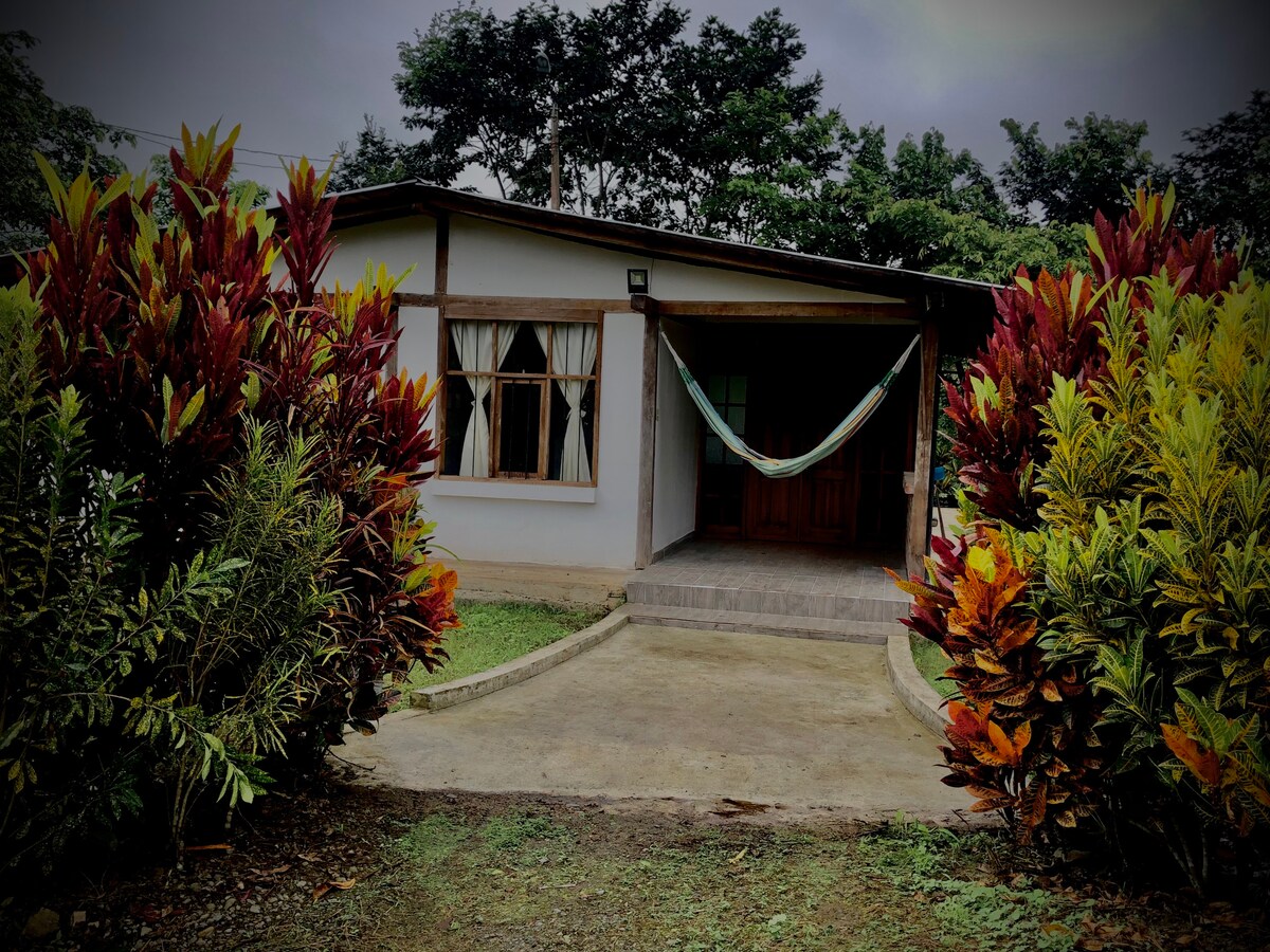 Cabaña muy acogedora con un amplio jardín con gran cantidad de árboles frutales. No cuenta con piscina pero tiene acceso privado al río que pasa tras la casa. Existen gran cantidad de lugares a visitar en la zona: cascadas, balnearios, rutas de senderismo por la naturaleza, etc. Very cozy cottage with a large garden. It does'nt have a pool but has private access to the river that runs behind the house. There are many places to visit around, and we are willing to help youwith wathever you need.