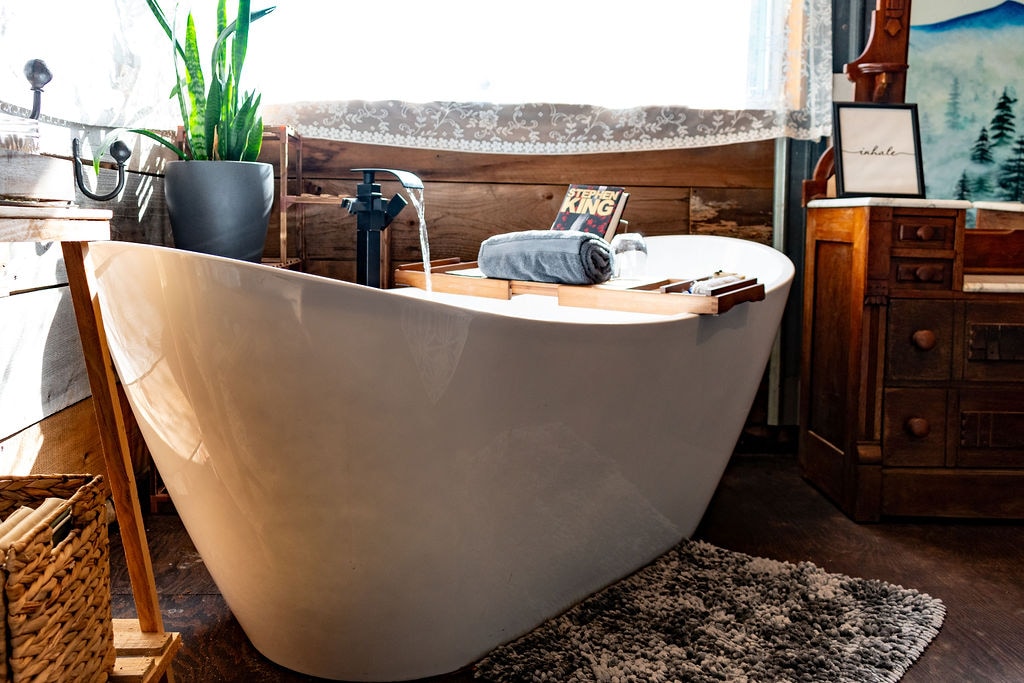 Cuando comenzamos la construcción de la cabaña con estructura en A, nuestro objetivo era crear una escapada de lujo donde pudieras trascender la monotonía del día a día. Esta cabaña con estructura a dos aguas totalmente personalizada fue hecha a mano con maderas viejas recuperadas y madera molida a mano. Está construida con la más alta calidad y cuidadosamente diseñada hasta el más mínimo detalle. Nos aseguramos de incluir acabados de lujo de alta gama en todas partes para que tu estancia en nuestro bosque privado de 80 acres sea completamente única. @frommtimbercompany