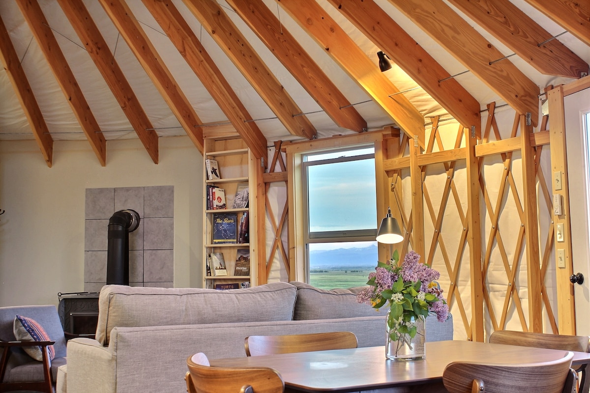 ¡Está increíblemente cerca de la naturaleza y es increíblemente cómoda! La yurta Broad Wing ofrece todo lo que necesitas bajo una cúpula. Disfruta de vistas panorámicas a la cordillera Teton con privacidad y toques de buen gusto. El lugar perfecto para los observadores de aves, junto a espacios abiertos y corredores migratorios con estanques en el lugar. Cada aspecto de este espacio sencillo y relajante ha sido cuidadosamente elaborado a mano. ¿Alguna vez has querido «vivir en la ronda»? Ahora es tu oportunidad de probarlo. #yurtaamplia