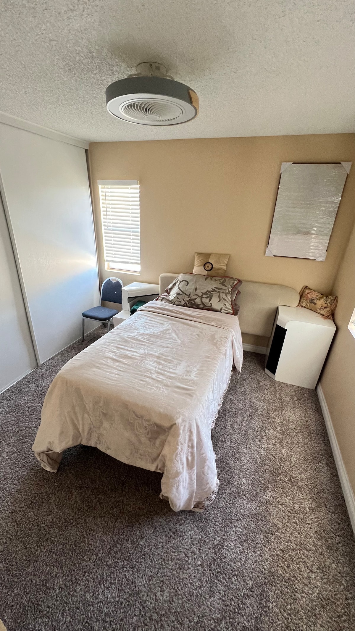 Acogedor estudio para enfermeras o huéspedes que viajan en viajes de negocios. Lugar cómodo para acostarse o relajarse frente a la televisión en un sillón reclinable viendo Netflix, Amazon Prime o Roku. Wifi rápido para tu comodidad. Ducha espaciosa, cocina completa y cama doble. Estacionamiento dentro de las instalaciones cerradas.