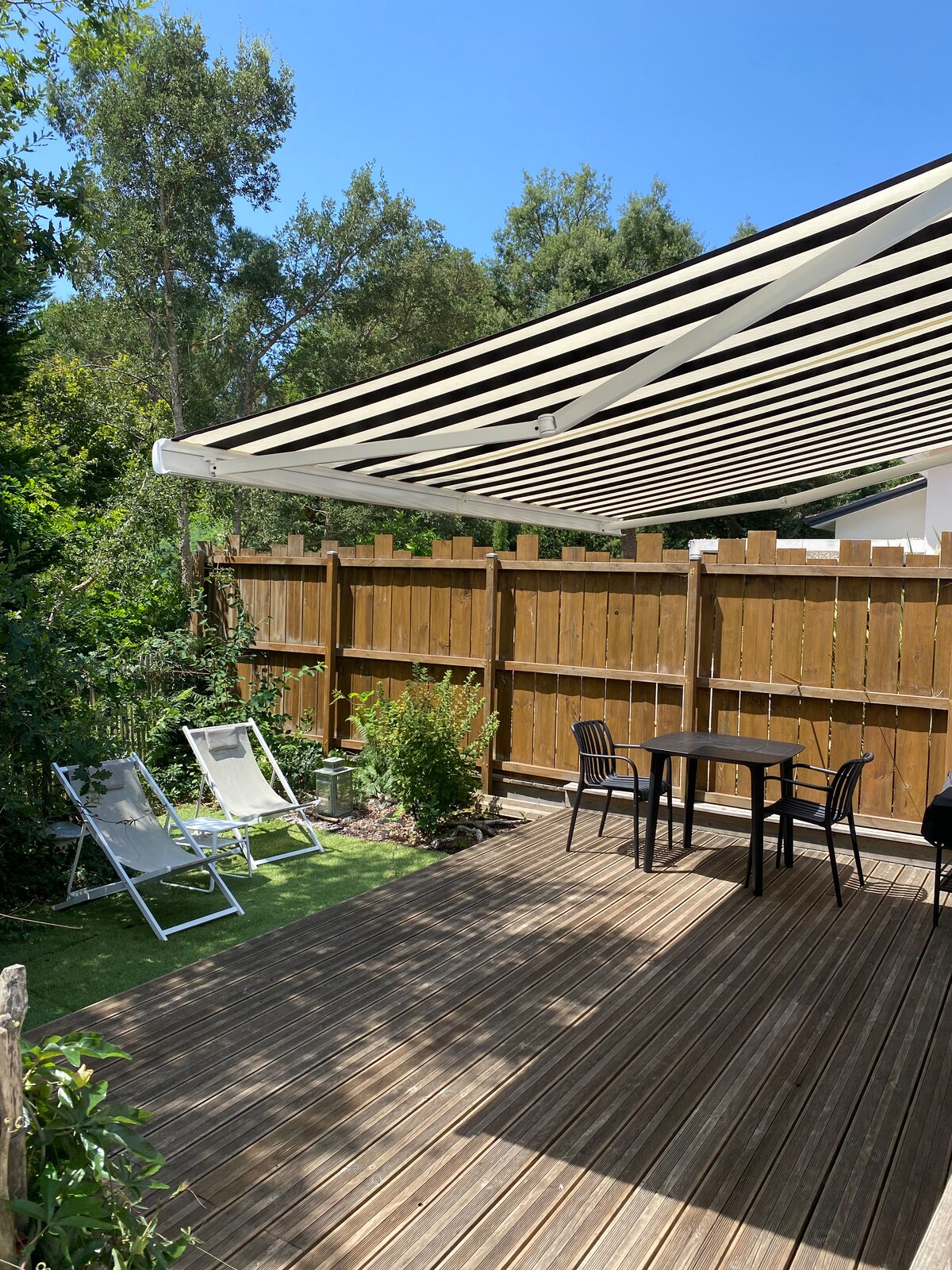 Venga a relajarse en la tranquilidad de nuestro T2 de 26 m2 completamente nuevo. Situado entre las Landas y el País Vasco, a 5 minutos de la playa y a 20 minutos de la frontera española. Cerca de todas las comodidades: Panadería, hipermercado, cine, tranvía... Alojamiento que consta de una cocina equipada con horno, placa de inducción, microondas, lavadora, etc. Salón, sofá,TV y WiFi. Habitación con cama doble, armarios y cuarto de baño. Parking privado. Jardín privado con terraza muebles de jardín, barbacoa...