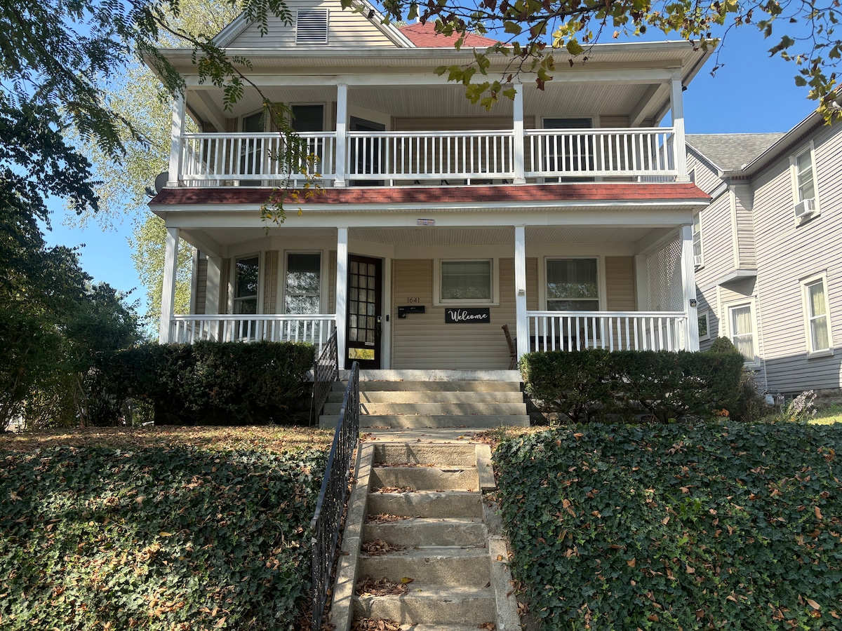 Este alojamiento único tiene personalidad propia. Recientemente renovada, la Blue Maiden fue construida en 1880 como hogar de los sirvientes que trabajaban en las mansiones que prevalecían en Farrington's Grove. Está a 1,4 millas del centro de la ciudad y del campus de la ISU, entre dos hospitales, y es conveniente para St. Mary of the Woods College, IVY Tech y el Instituto de Tecnología Rose-Hulman. Está cerca de la I-70, a una manzana de la US 41, y mantiene muchos de sus encantos victorianos originales. ¡Está a menos de 5 millas del nuevo casino!