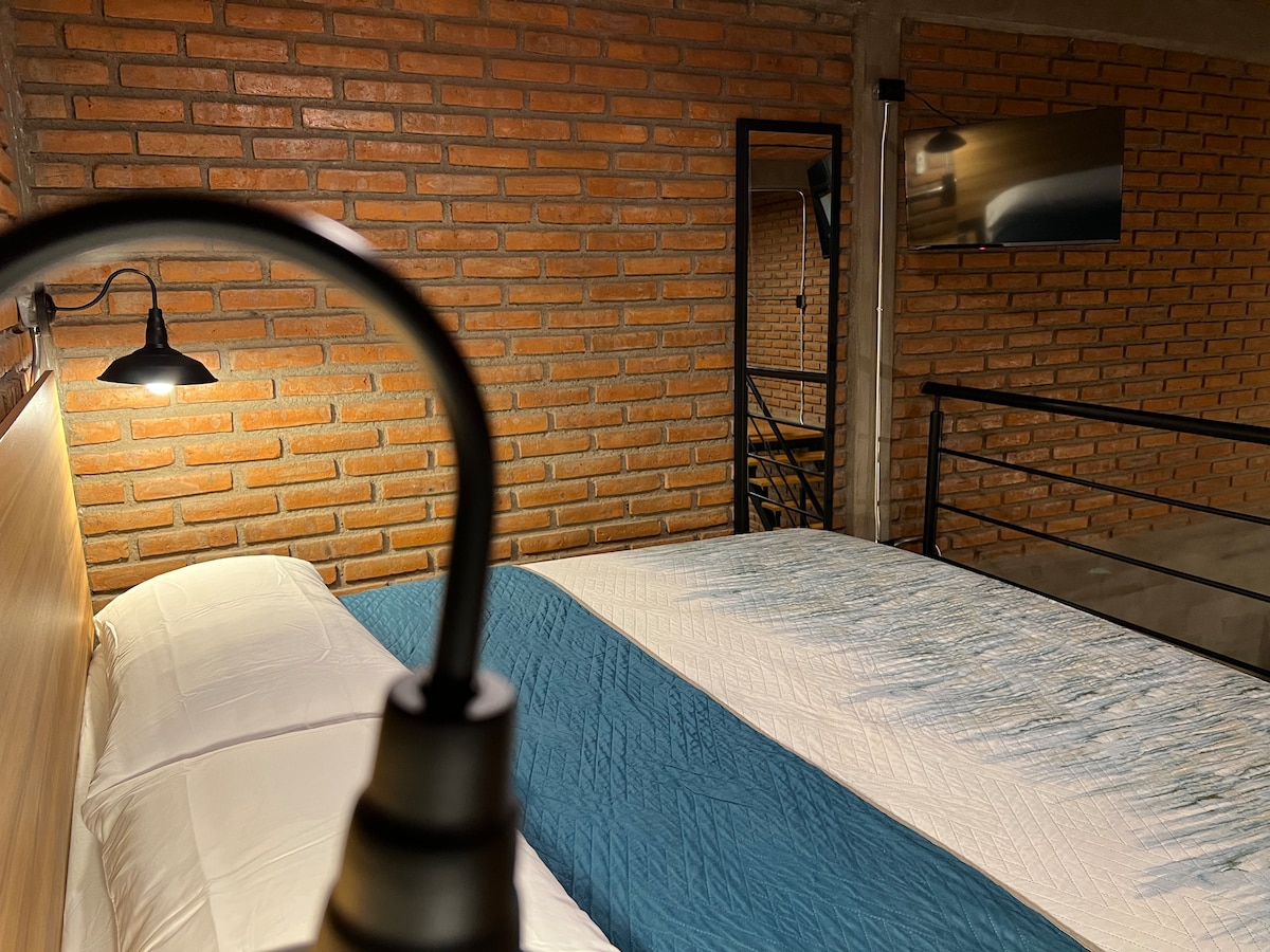 Loft independiente y acogedor, excelente ubicación. Cama King, TV cable y estufa de inducción magnética . A unas cuadras del estadio Victoria y Deportivo IV Centenario. Cerca del complejo ferrocarrilero donde se ubican el Museo de Arte Contemporáneo, Hospital Hidalgo, oficinas de Grupo Modelo, Teletón y Complejo Ferrocarrilero Tres Centurias. Sur/Norte de la ciudad en 15 min y Centro 7 min. A 10 min del Poliforum Charro. Disfruta lo que Ags tiene para ti; siéntete como en casa durante tu visita.