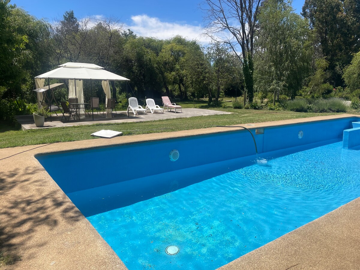 Hermosa casa independiente y equipada. Dispone de aire acondicionado y chimenea. A escasos kilòmentros del centro de la ciudad de Los Angeles. Especial para viajeros que desean disfrutar de unos dìas de descanso o por trabajo. Con acceso a rìo, piscina y vista a una hermosa laguna natural. Cerca de restaurantes, locales comerciales. Con exelente señal Wifi. Se aceptan mascotas. Entrada independiente . El servicio de jacuzzi tiene un costo adicional.