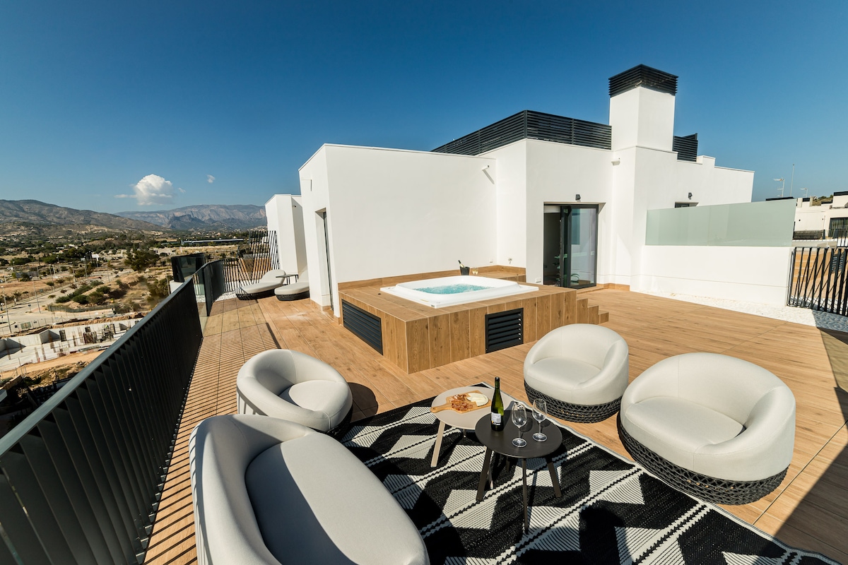 Amplio ático con vistas al mar, jacuzzi y piscina