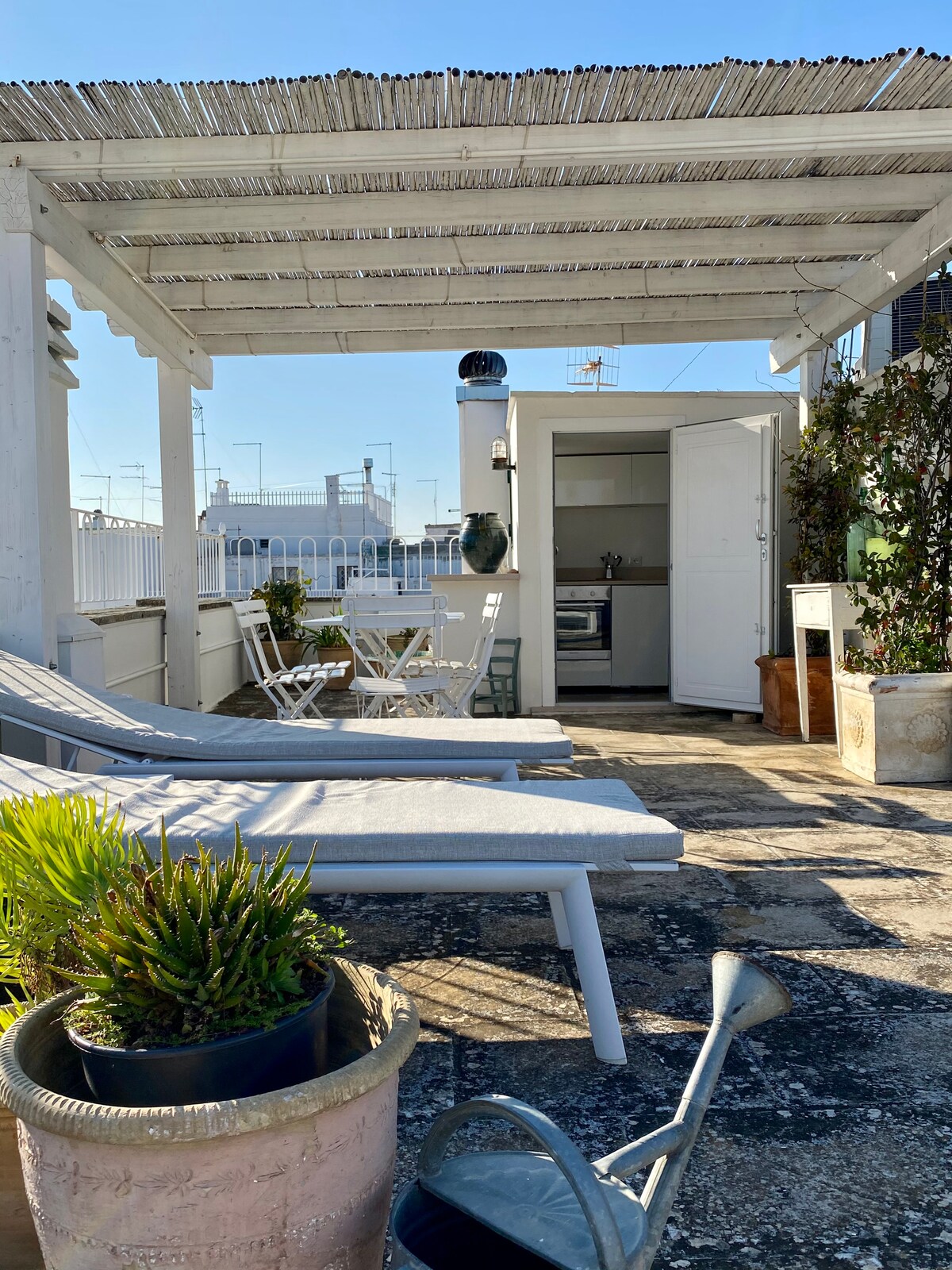CIS: BR07401291000000188 CIF: IT074012B400033730 Vive la mágica sensación de encontrarte entre el pasado y el presente: ¡es una casa histórica! Los suelos de época y las paredes de piedra son el telón de fondo de un entorno amueblado con objetos de diseño, cerámicas antiguas y muebles locales. La gran terraza privada, con solárium y ducha caliente, te entusiasmará: podrás relajarte con una copa de vino al atardecer, disfrutar del sol en cómodas tumbonas o preparar una cena en un ambiente mágico de Apulia.
