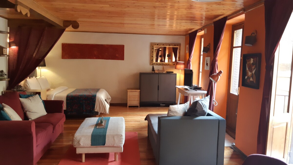 El otoño se instala en nuestras hermosas montañas, así como en nuestro estudio 🍁Ven a disfrutar y descubrir esta hermosa temporada con colores cálidos, tanto en el exterior como en el interior 🍂 Estudio en la planta baja del jardín 5 personas con entrada independiente, exterior+ estacionamiento+local de esquí/bicicletas. Cocina equipada, sofá cama+literas, baño/WC separados. Tranquilidad y autonomía aseguradas. Autobús a 3 minutos hacia el centro/Prorel, tiendas a 2 minutos en auto. Vivimos en el lugar, discretos pero disponibles si es necesario.