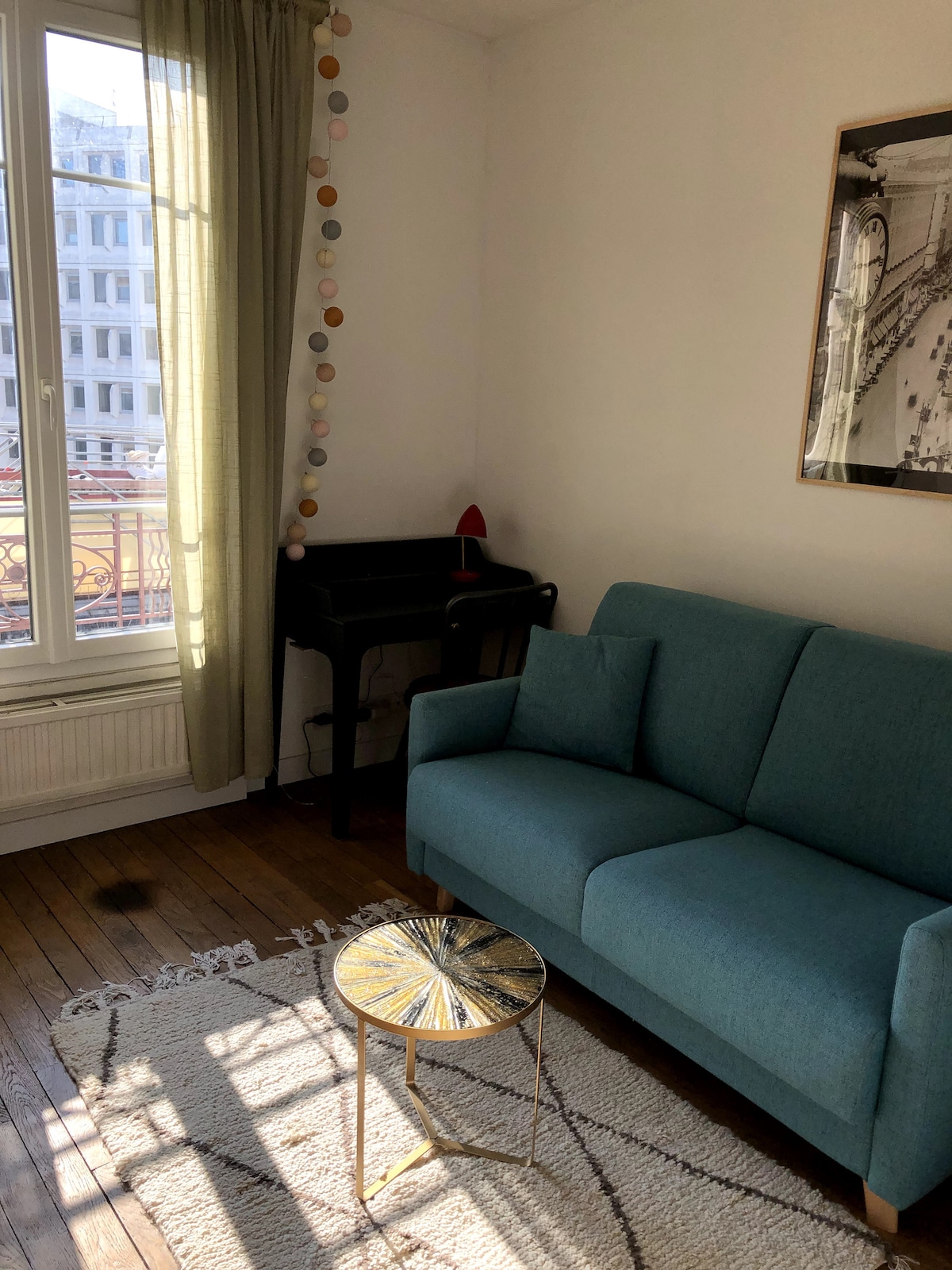 Bonito estudio de 29 m2 + 4 m2 de balcón en el jardín. Perfecto para una o dos personas. Cocina totalmente equipada, mesa de comedor, zona de estar, zona de dormitorio (cama de 140*200). Junto a la estación de Jaurès/Bolivar. A 250 m del canal de l'Ourcq y a 700 m de Buttes Chaumont. Plaza del mercado secreto, Tenga en cuenta que esta es mi residencia principal.