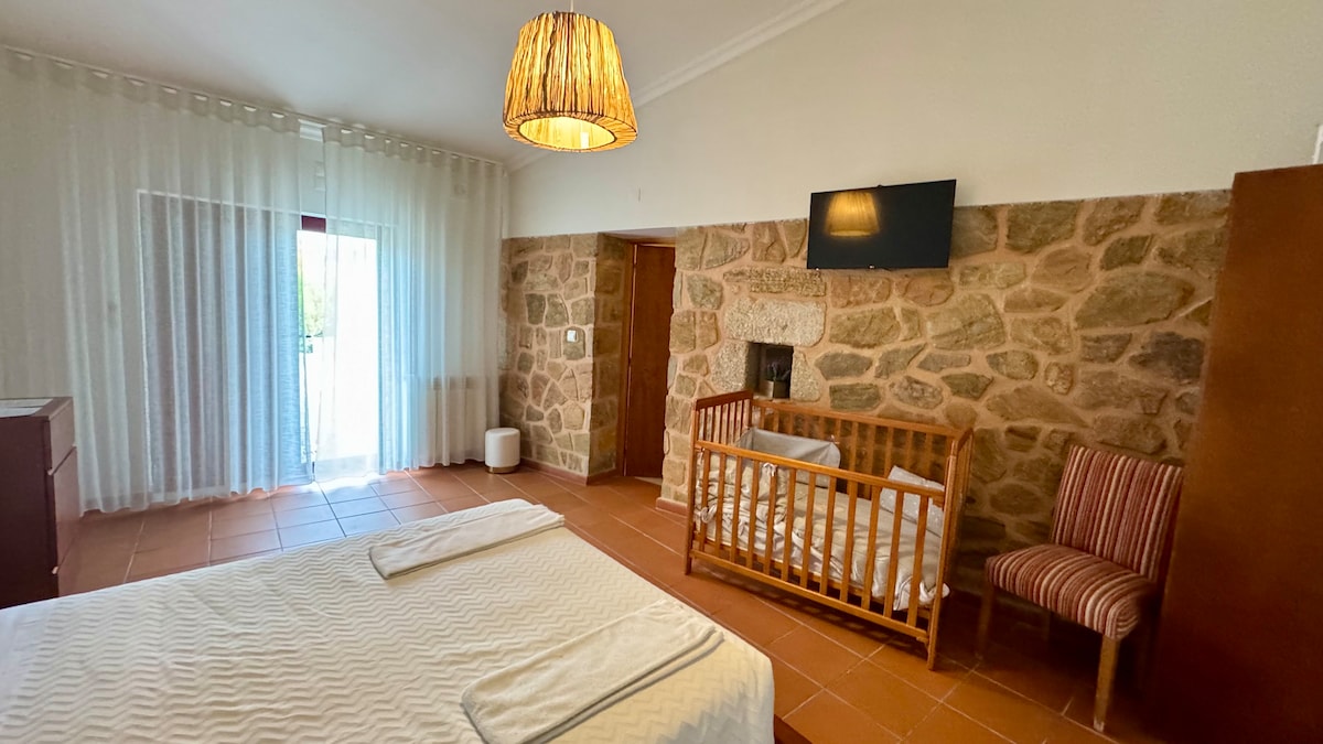 Habitación doble con wc privado. También tenemos habitaciones familiares. Fuera de la ciudad se encuentra en una hermosa casa de piedra ubicada en Castelo de Paiva. Aquí ofrecemos alojamiento a nuestros huéspedes y actividades al aire libre en un entorno acogedor, relajado y rústico.