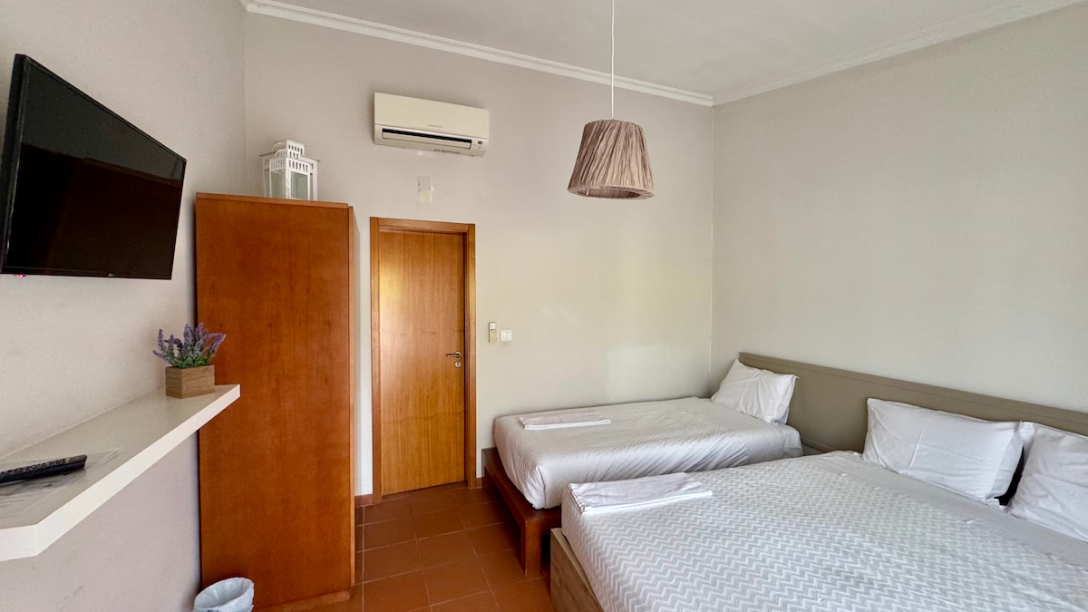 Casa Vieira Lobo - Suite 2 tiene 30 m² y baño privado, armario, TV y aire acondicionado. También es posible poner una cama supletoria. Al alquilar la suite 2, puedes disfrutar del espacio abierto en el piso cero, la piscina, el jardín y el estacionamiento privado. El desayuno está incluido en el precio final. Una cama doble con la posibilidad de poner una cama extra.