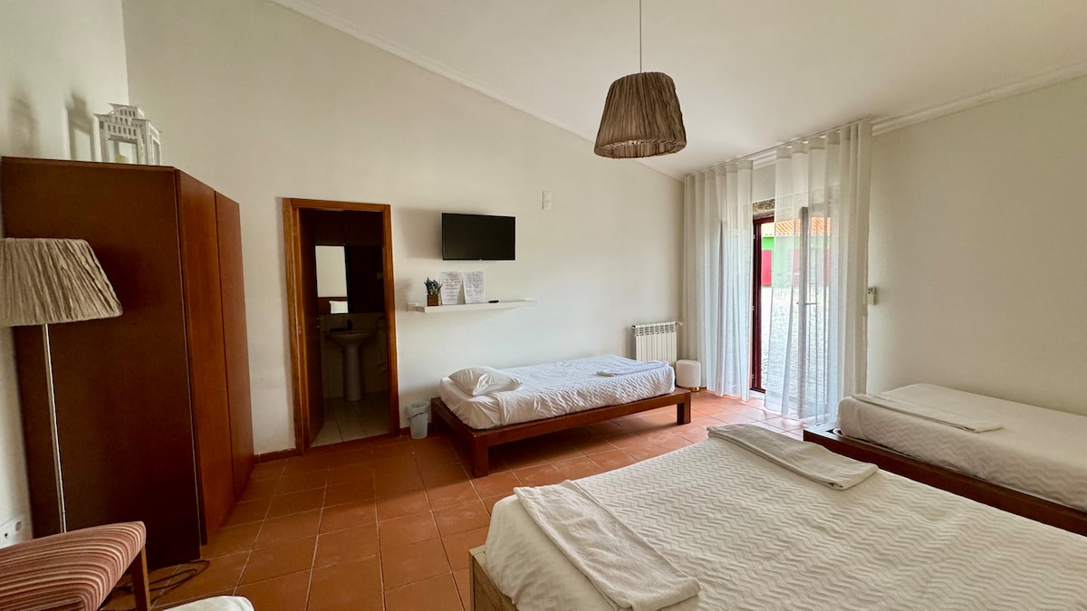 Con unas vistas encantadoras a la montaña, la habitación familiar combina comodidad y encanto, con una cama doble y dos camas individuales, ideal para toda la familia. El baño privado, la cafetera y la tetera hacen que la estancia sea aún más práctica. El desayuno está incluido y hay posibilidad de cuna (coste adicional). Se admiten animales (coste adicional). La piscina, las zonas exteriores y el espacio para el desayuno se comparten con otros huéspedes en un ambiente acogedor y tranquilo.