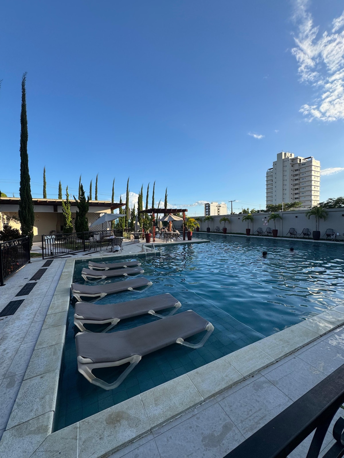 Apartamento bien ubicado JUNTO A MIRAFLORES ARENA y BEACH SUNSET ARENA. Con garaje, planta baja a 2 minutos de Olivia Flores y a 4 minutos del bulevar comercial, además de estar cerca de las principales universidades. Cuenta con piscina,gimnasio y parque infantil. Contamos con una cámara de monitoreo en la zona exterior de la propiedad, por lo que es necesario informar el número correcto de huéspedes en la reservación.