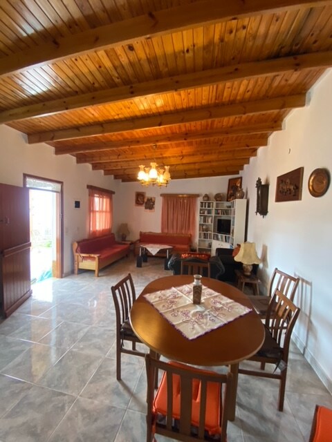 Irene 's Cottage Myrtonas es una escapada tranquila en la cima de una colina, perfecta para parejas. A solo 15 minutos de la playa de Kyra Panagia, ofrece vistas al mar, un gran patio privado con parrilla, cocina completa, acogedor comedor/sala de estar y una cama tipo loft tradicional Karpathiko con almacenamiento. Con aire acondicionado, WiFi y lavadora, combina comodidad, encanto y auténtico estilo karpatiano para una escapada romántica y relajante.