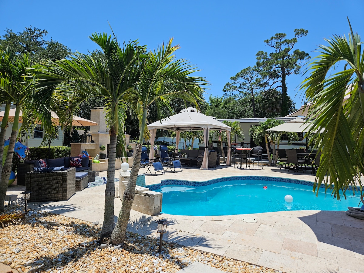 ¡Ven a disfrutar de este exclusivo bungalow Backyard Camping Delight! Glamping en un remolque de viaje con todas las comodidades (baño completo y cocina, cama tamaño queen con colchón orgánico hecho a medida, aire central, wifi gratuito y aparcamiento) en un barrio tranquilo y seguro. Además, podrás disfrutar de un porche cubierto amueblado donde podrás sentarte y relajarte. Disfruta de eventos cercanos; cerca de Daytona Speedway, Wilbur by the Sea, Ponce Inlet Lighthouse y excelentes restaurantes a solo unos minutos de distancia.