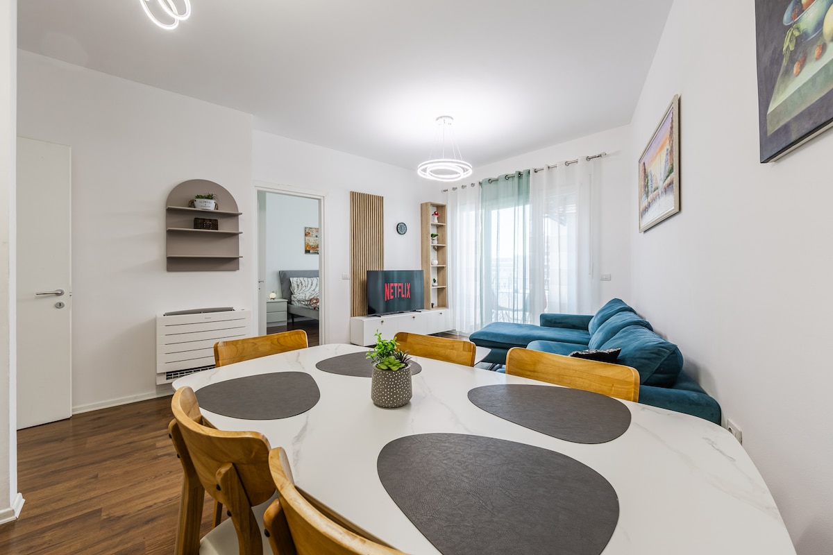 - Llegada autónoma fácil disponible las 24 horas. - Wifi rápido y estable (80 Mbps DL / 15 Mbps UL). - Aire acondicionado en todas las habitaciones, lavadora y secadora. - Cama cómoda con espuma viscoelástica. - Limpiezas semanales con cambio de sábanas y toallas nuevas. - Gratis: Netflix, Disney+, Amazon Prime Video, SkyShowtime. - Cocina equipada, horno y cafetera expreso. - Todos los elementos esenciales de cocina incluidos (aceite de oliva, sal, pimienta, azúcar, café y té). - Aparcamiento subterráneo en el mismo complejo de edificios. (No gratis. Pagado por el huésped).