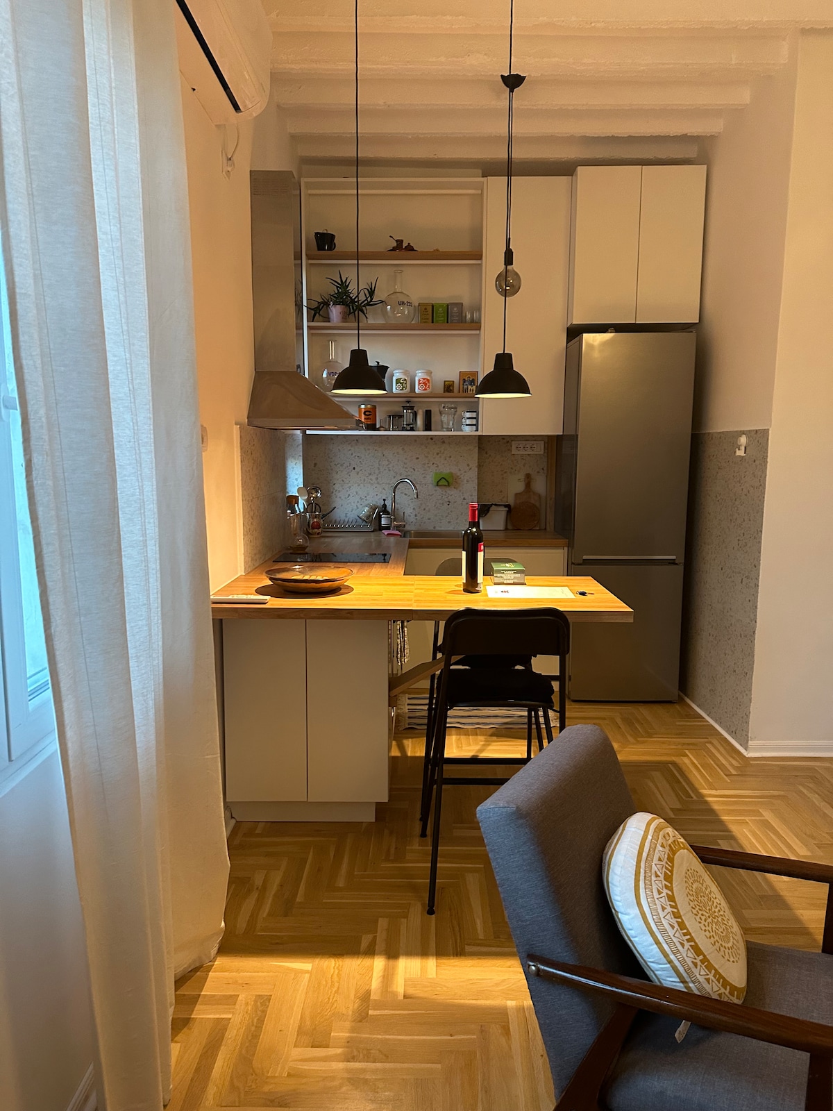 Un apartamento tipo estudio luminoso y acogedor disponible para alquilar, escondido en una calle tranquila en el corazón de Belgrado. Aunque pequeño, el espacio está cuidadosamente diseñado y totalmente funcional, perfecto para una persona o una pareja. Ubicado en el tercer piso de un edificio con ascensor, el apartamento cuenta con una cómoda cama doble, una cocina totalmente equipada, un baño y un balcón privado, ideal para un café por la mañana o una noche tranquila. Todo lo que necesitas, en un tranquilo rincón del centro de la ciudad.