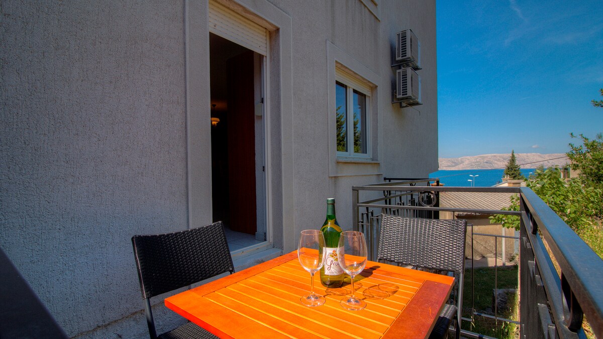 New apartment with the amazing view over the sea and right next to the beach. House is located outside of town in a quiet neighborhood, between pines and plants. It is a great spot if you're looking to relax, enjoy beach, sun and fresh air. Feel free to use traditional stone grill to cook fish which you can get from local fishermen. Enjoy your meal on the balcony with natural pine shade. You can experience occasional famous wind Bura that makes our sea clean and has proven respiratory benefits.